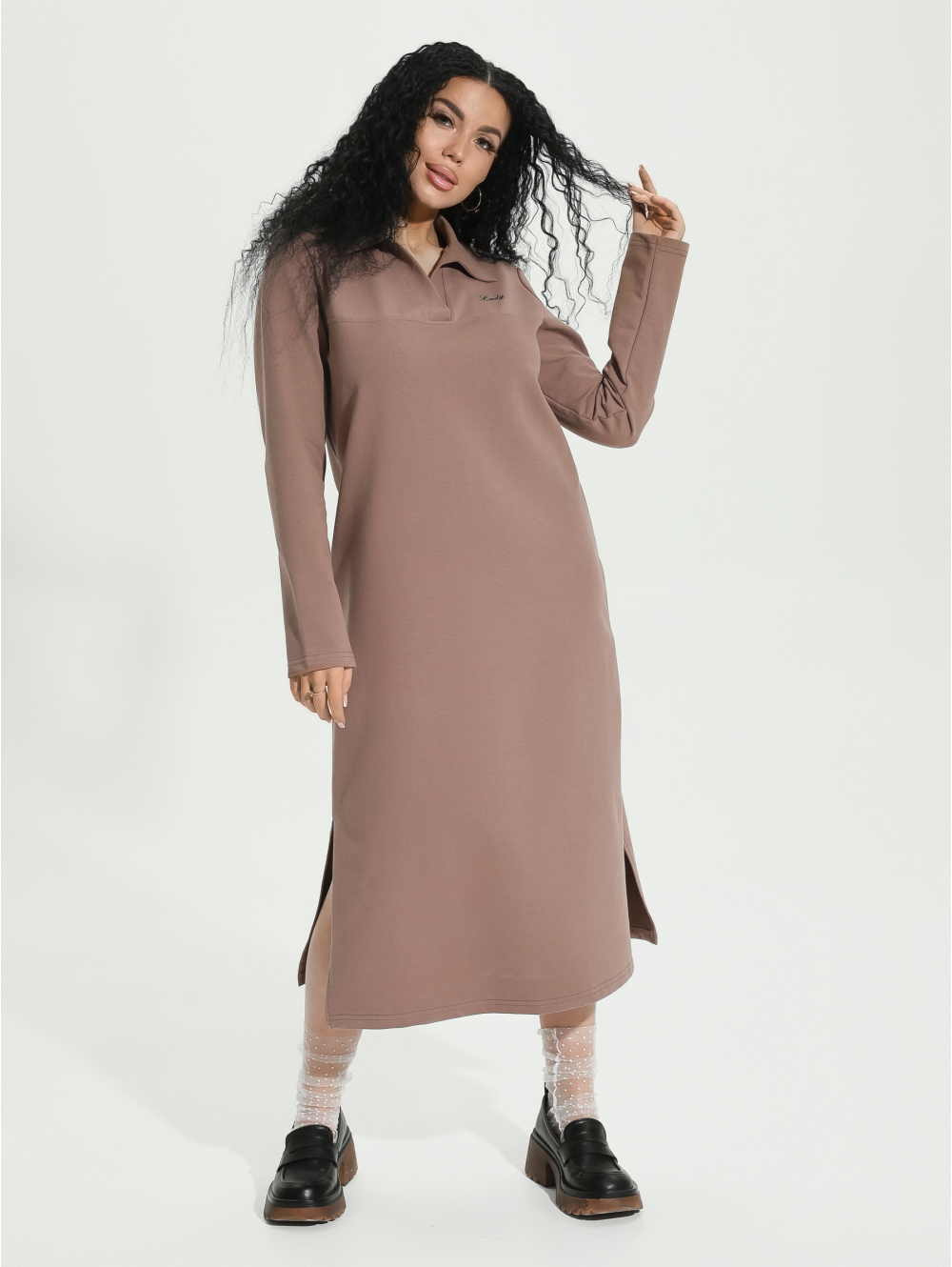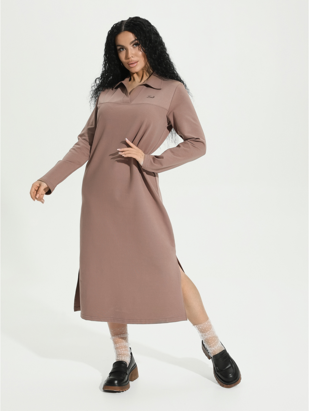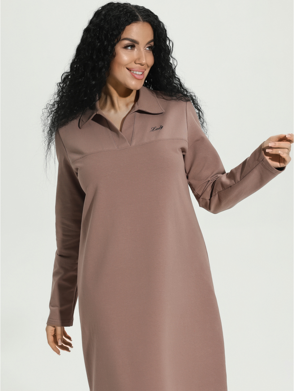 Платье Эстель полуприлегающего силуэта с длинным втачным рукавом. В горловину втачан отложной воротник. В нижней части левой кокетки вышивка. Однотонное повседневное платье полуприталенного кроя - воплощение свободы, естественности и смелости. Прекрасно держит форму и отлично сидит на любой фигуре. Базовый вариант платья, который легко стилизовать при помощи обуви и аксессуаров для разных событий.