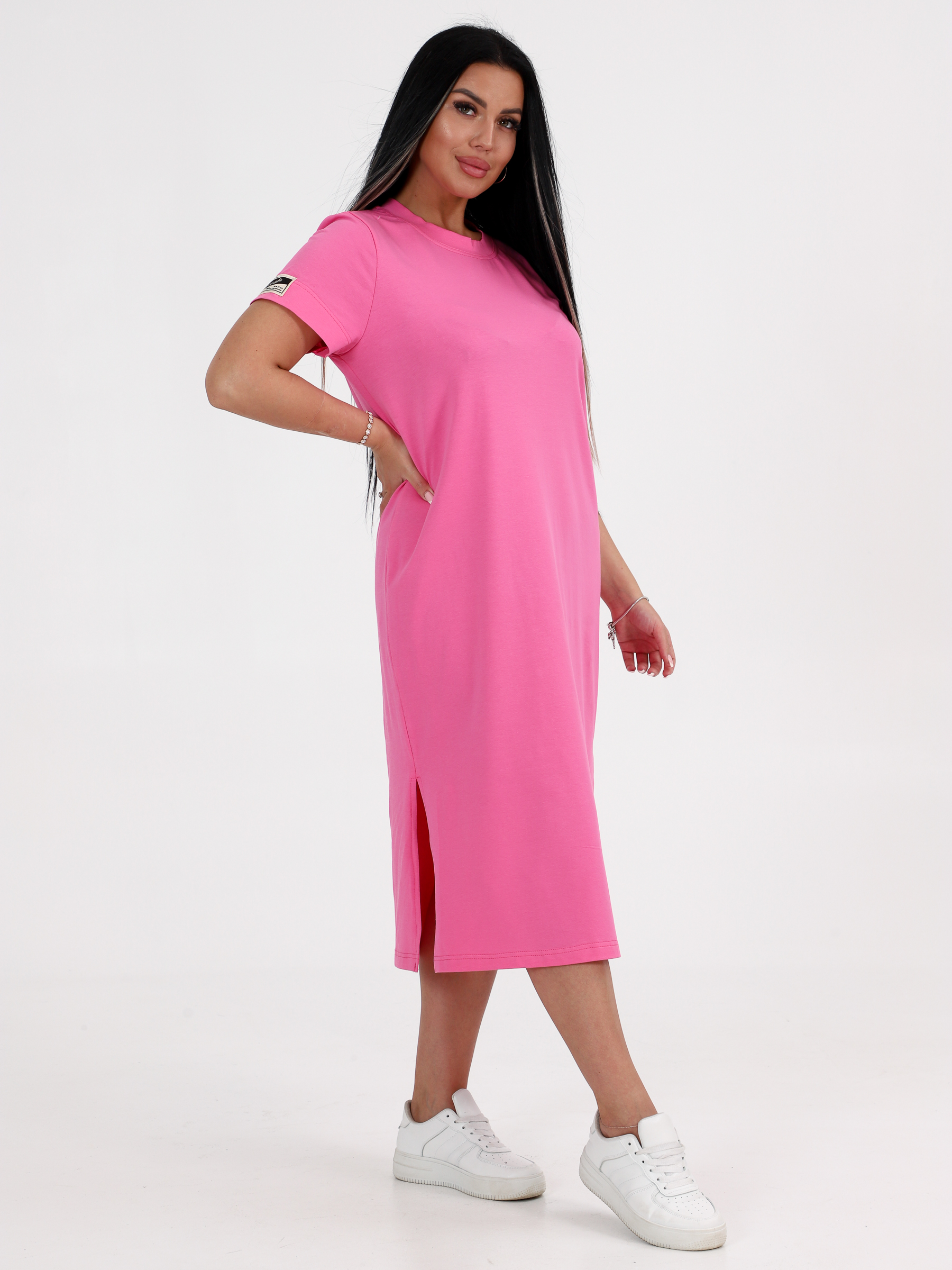 Стильное удлиненное однотонное платье-футболка прямого кроя оверсайз - воплощение свободы, естественности и смелости. Платье из хлопкового полотна с лайкрой прекрасно держит форму и отлично сидит на любой фигуре. Базовый вариант, который легко стилизовать при помощи обуви и аксессуаров для разных событий. Красивое женское платье - в нем не будет жарко летом, ткань эластична и износостойка. Комфортное платье - натуральный хлопок приятен к телу и не сковывает движений. Летнее платье - отличная база под джинсовые куртки, оверсайз-рубашки и легкие жакеты. Данное платье универсальное и отлично подойдет для ежедневной носки, прогулок, спорта, офиса и встреч с друзьями.