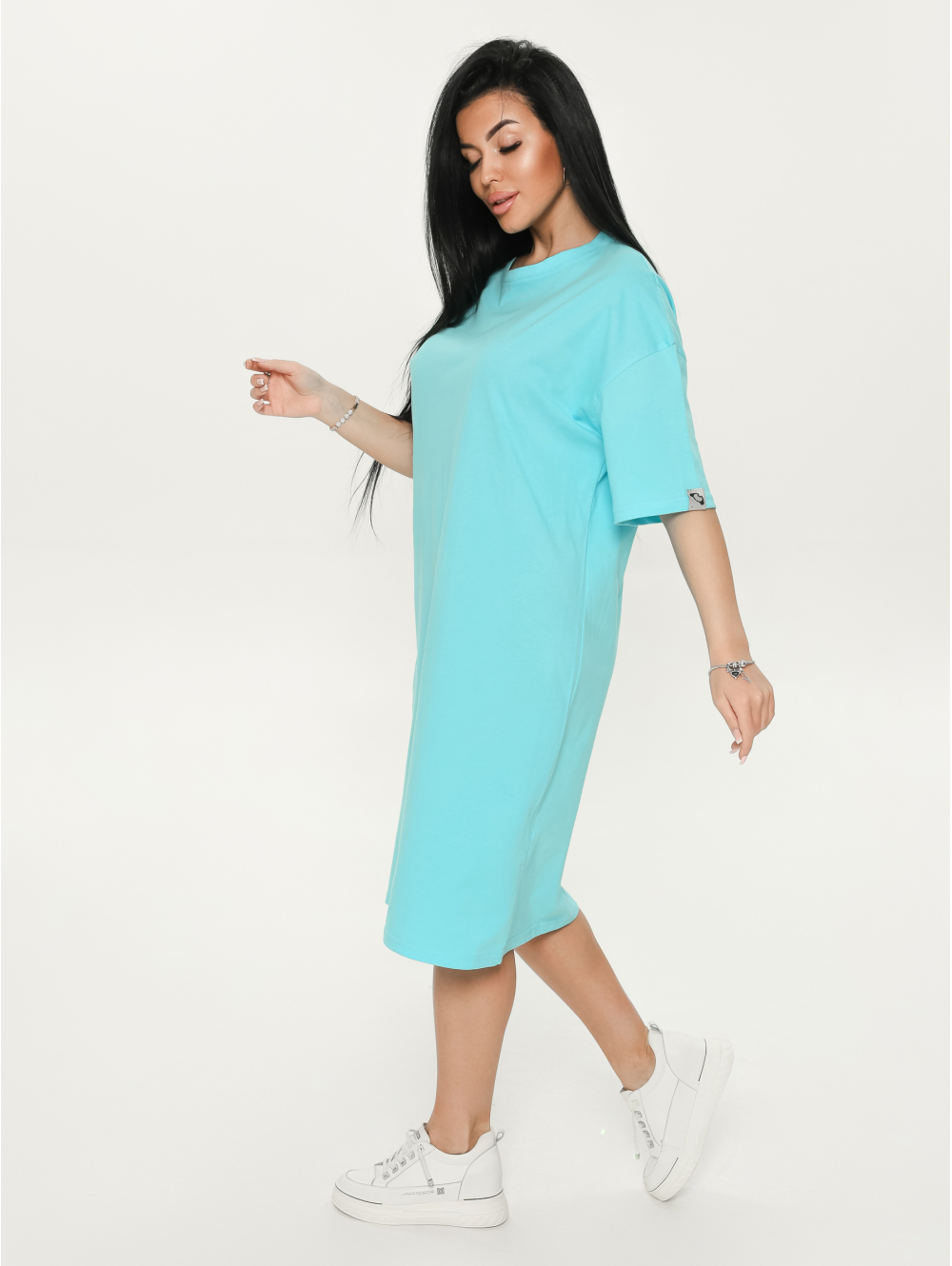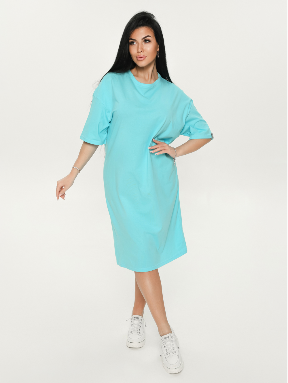 Платье Салли оверсайз с коротким втачным рукавом, длиной ниже колен. Горловина обработана обтачкой из кашкорсе.