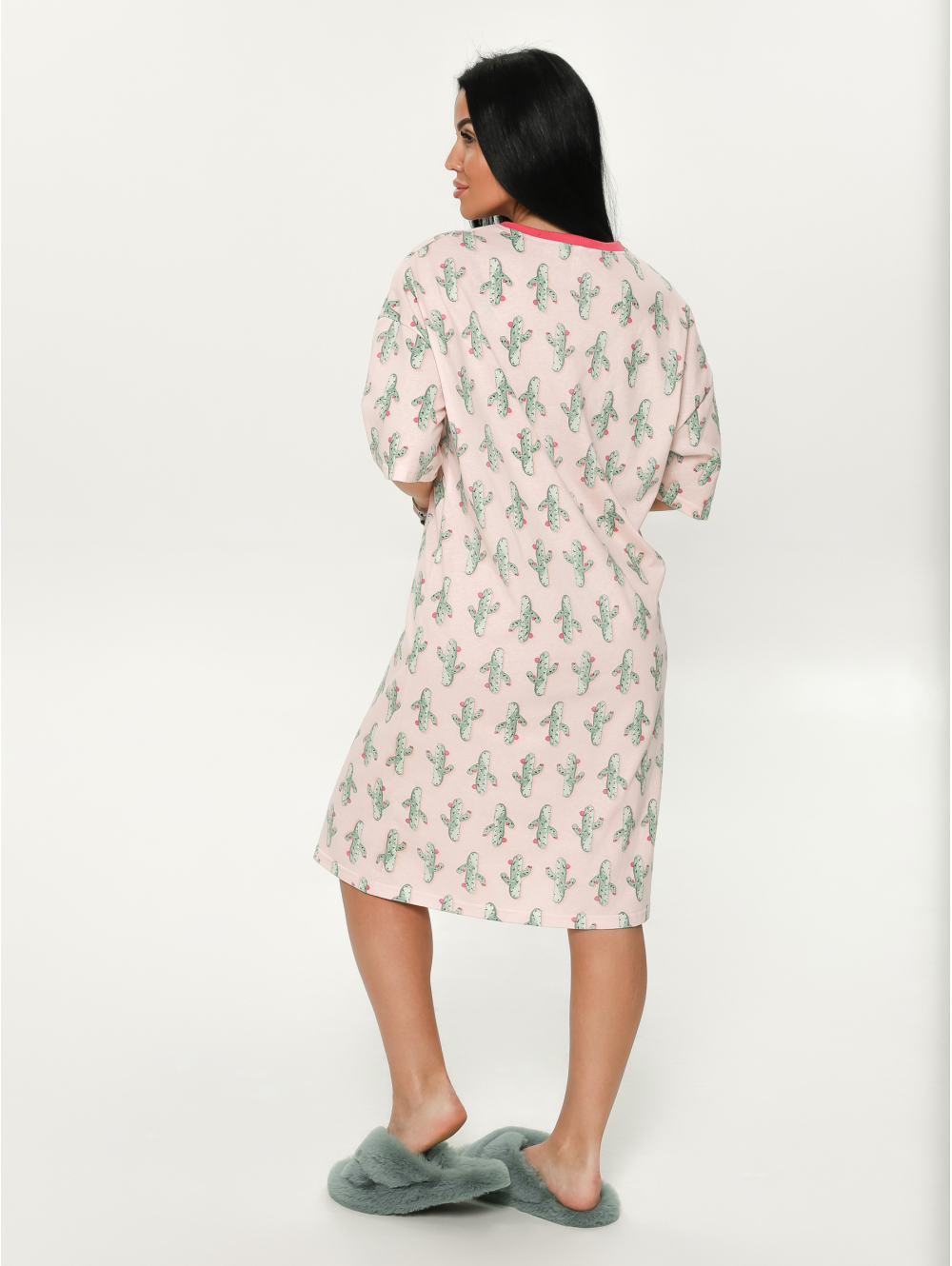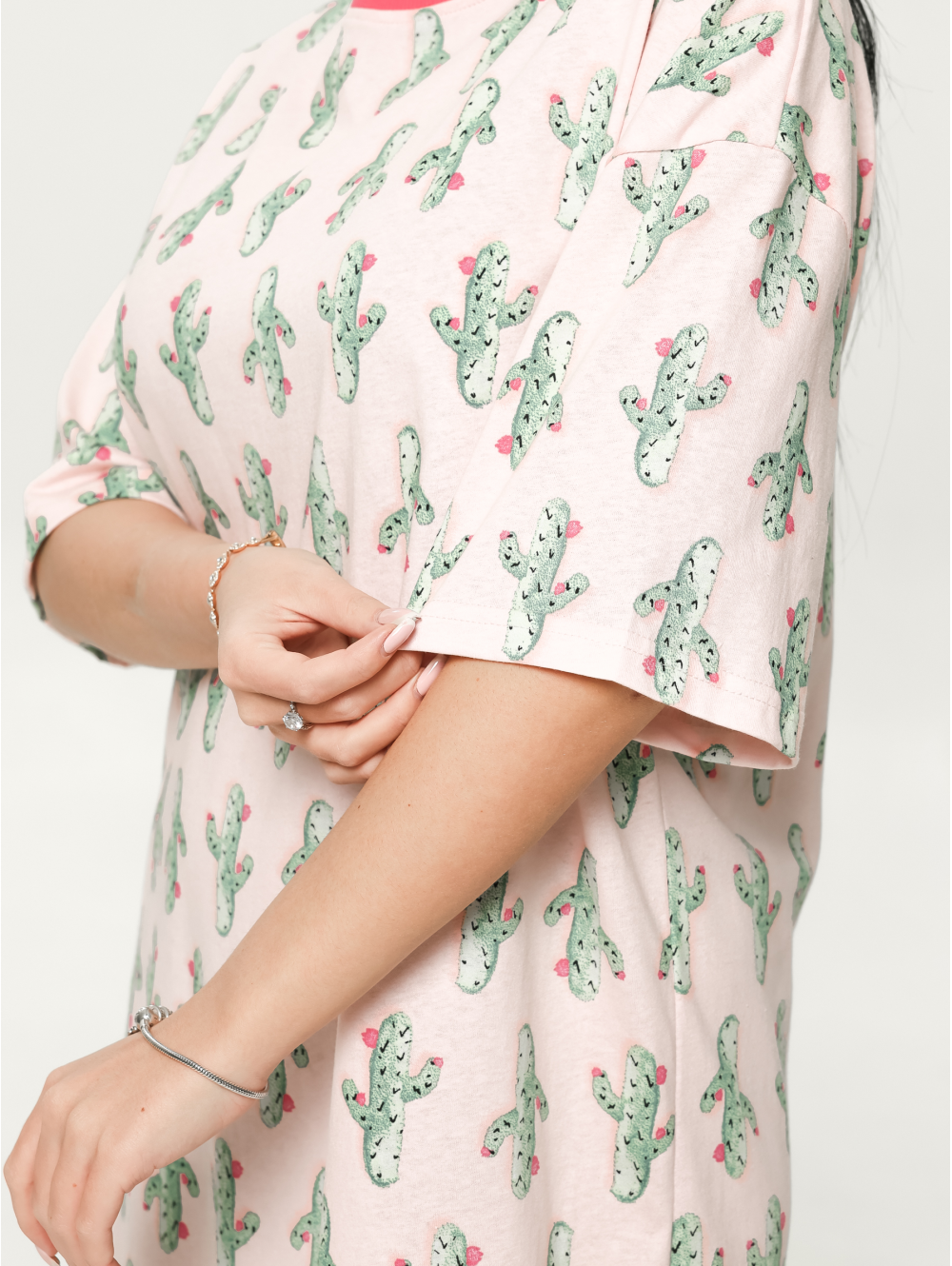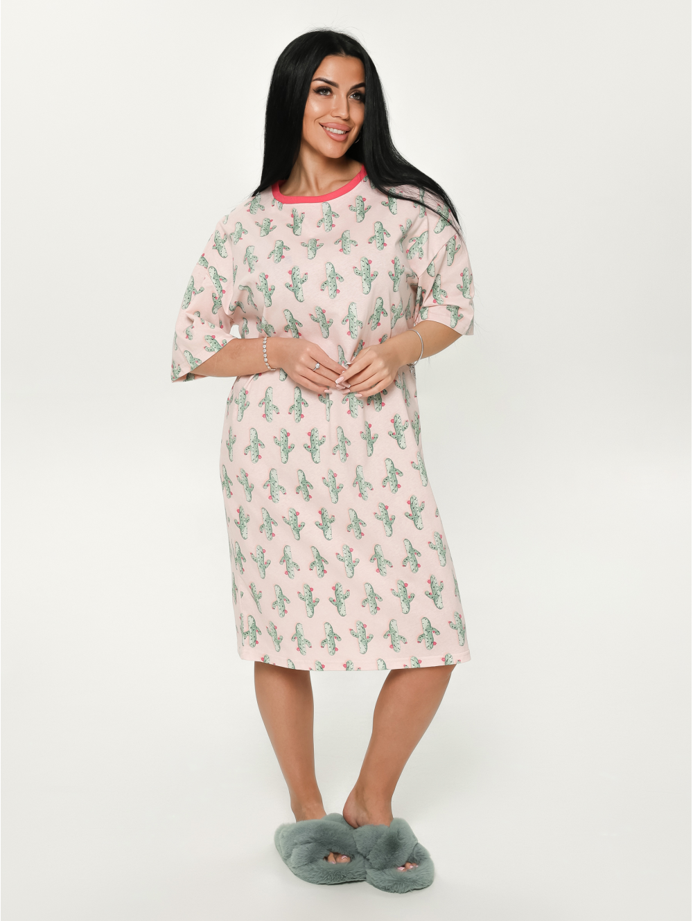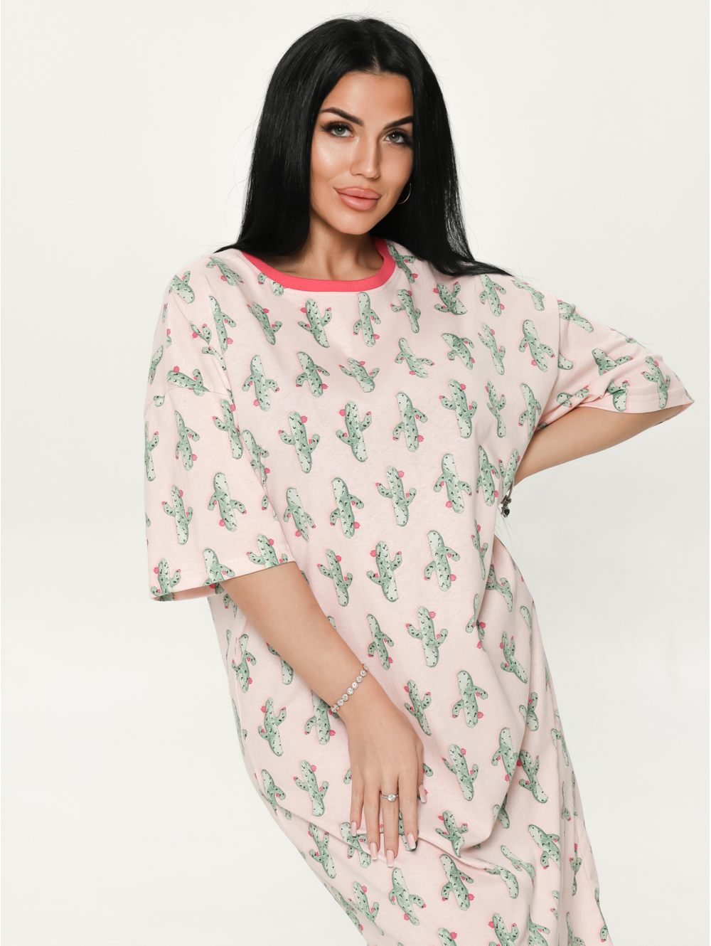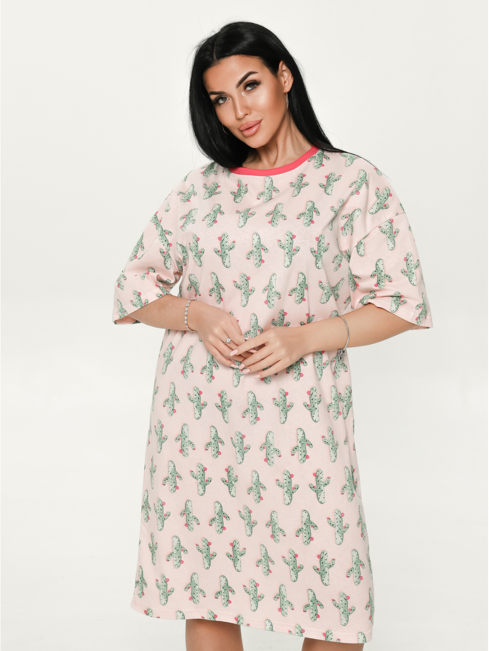 Платье Салли оверсайз с коротким втачным рукавом, длиной ниже колен. Горловина обработана обтачкой из кашкорсе.