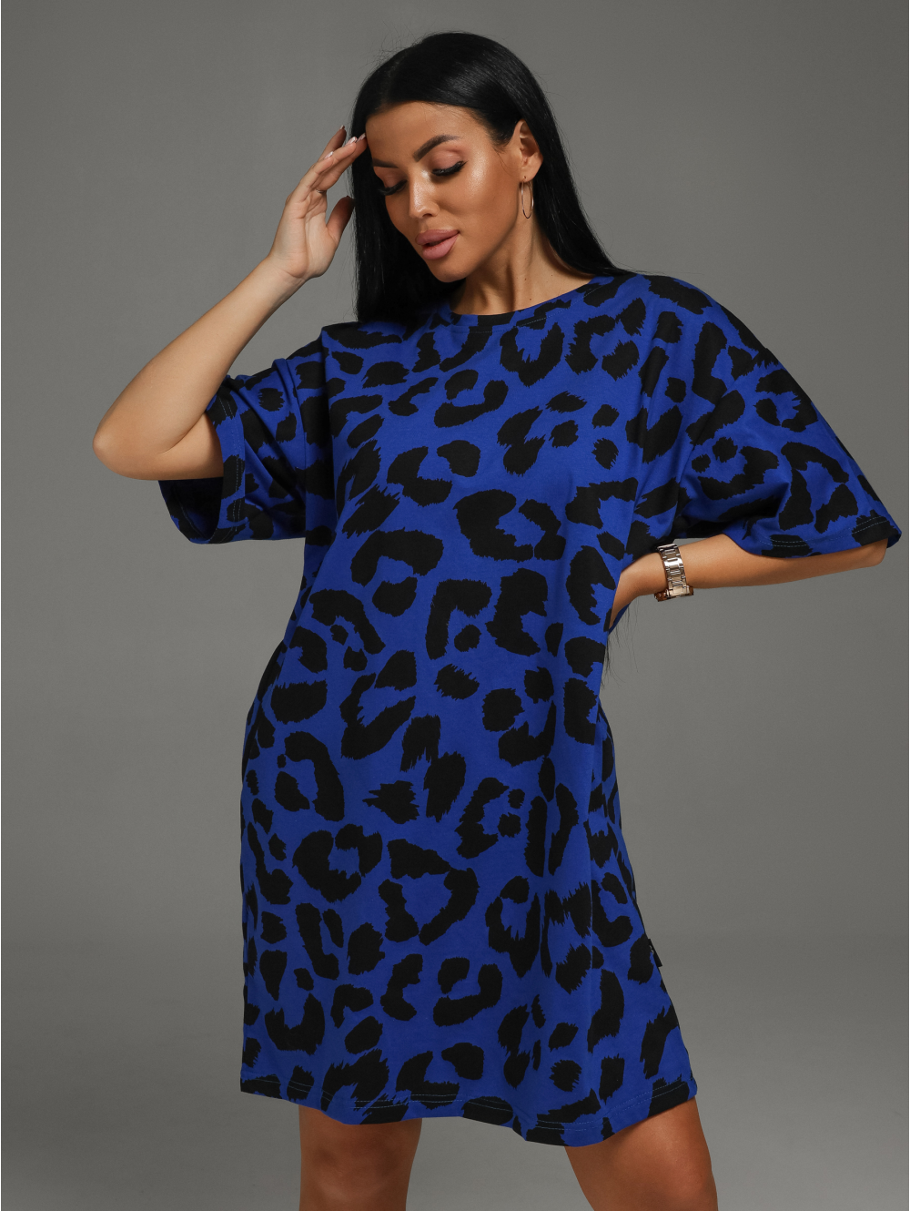 Платье-футболка Вега oversize с коротким спущенным втачным рукавом.