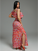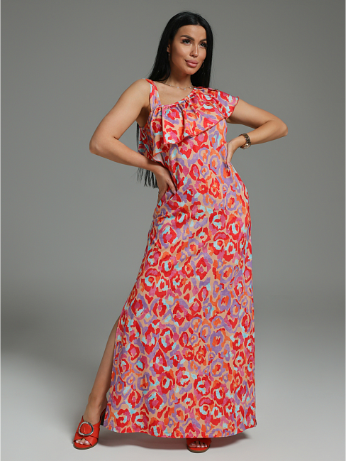 Платье Гаваи длиной макси, приталенное, с ассиметричной горловиной, с воланом на сборке по горловине.