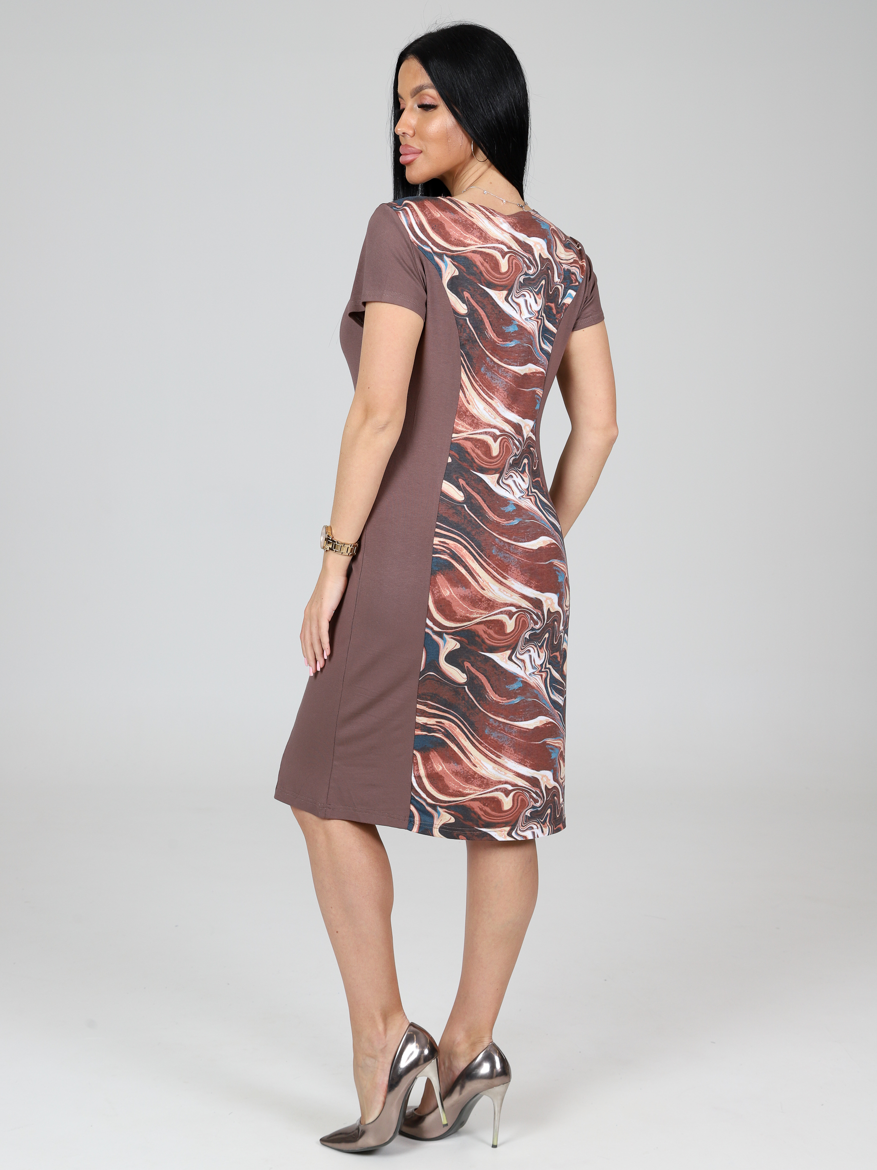 Платье трикотажное, комбинированное, из смешанных волокон, приталенное. Длина по спинке - 92 см. Это платье, которое скроет недостатки и подчеркнет Ваши достоинства! Платье сшито из мягкой, приятной к телу ткани, носить его одно удовольствие. Купив это платье Вы не только порадуете себя обновкой, но и практично вложите свои средства, т.к. данную модель можно одеть на работу, пойти в нем на деловую встречу, прогулку, в ресторан или кафе.