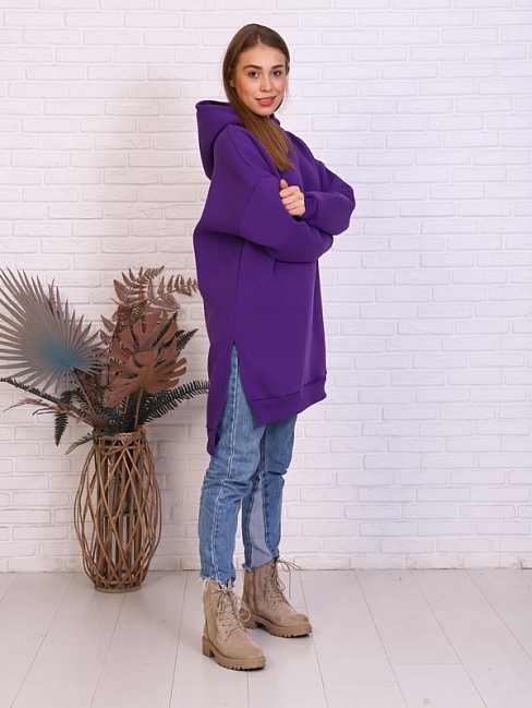 Наше удлиненное худи превратилось в уютное платье-тунику Меган в стиле оверсайз. Спущенное плечо, объемные рукава, свободный покрой дает возможность скрыть некоторые недостатки фигуры.