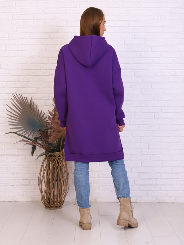 Наше удлиненное худи превратилось в уютное платье-тунику Меган в стиле оверсайз. Спущенное плечо, объемные рукава, свободный покрой дает возможность скрыть некоторые недостатки фигуры.