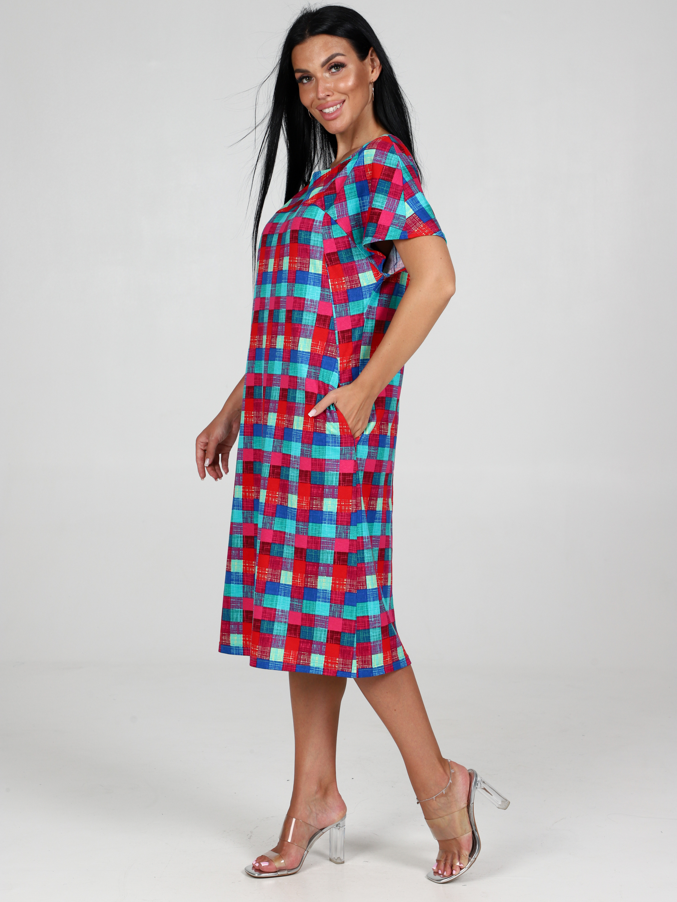 Платье трикотажное из кулирки с отрезной кокеткой, рукава спущенные, есть 2 внутренних кармана. Практичное, легкое, удобное для дома, дачи, летних прогулок женское платье из кулирки.