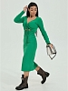Платье миди Крис, приталенное, отрезное по талии с длинным, втачным рукавом. Верхняя часть полочки со средним швом, вдоль которого застрочены кулисы, в которые продеты шнурки из основного материала.