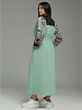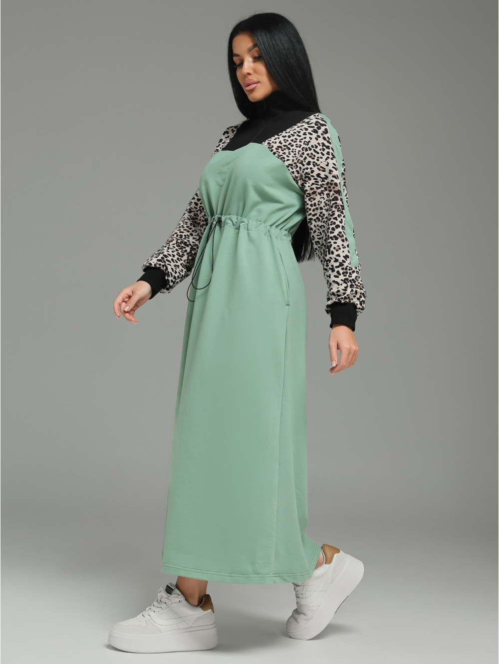 Современный силуэт с архитектурным кроем! Платье прямого покроя длины миди с длинными рукавами и фигурными вставками из футера.