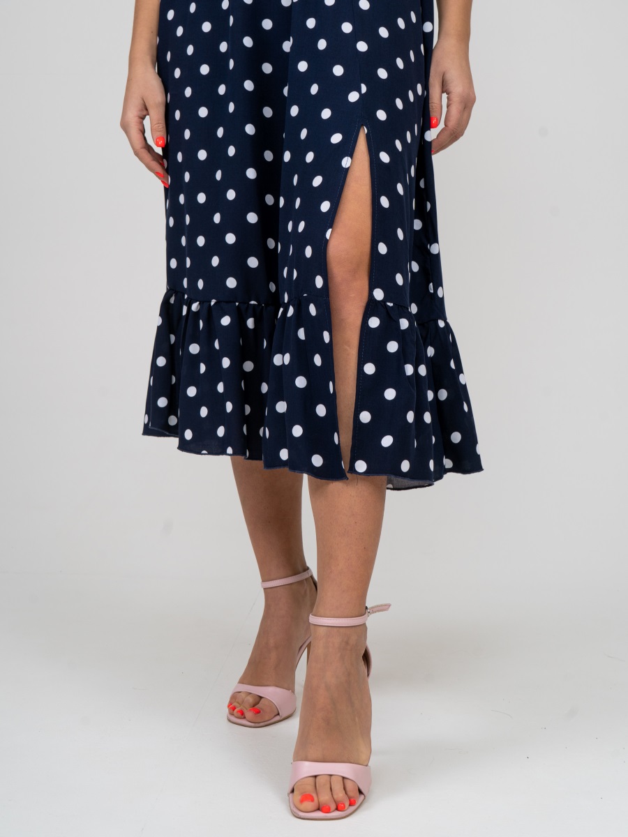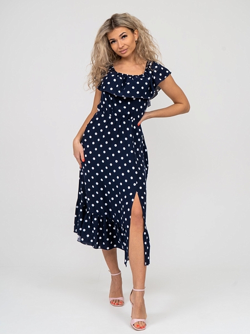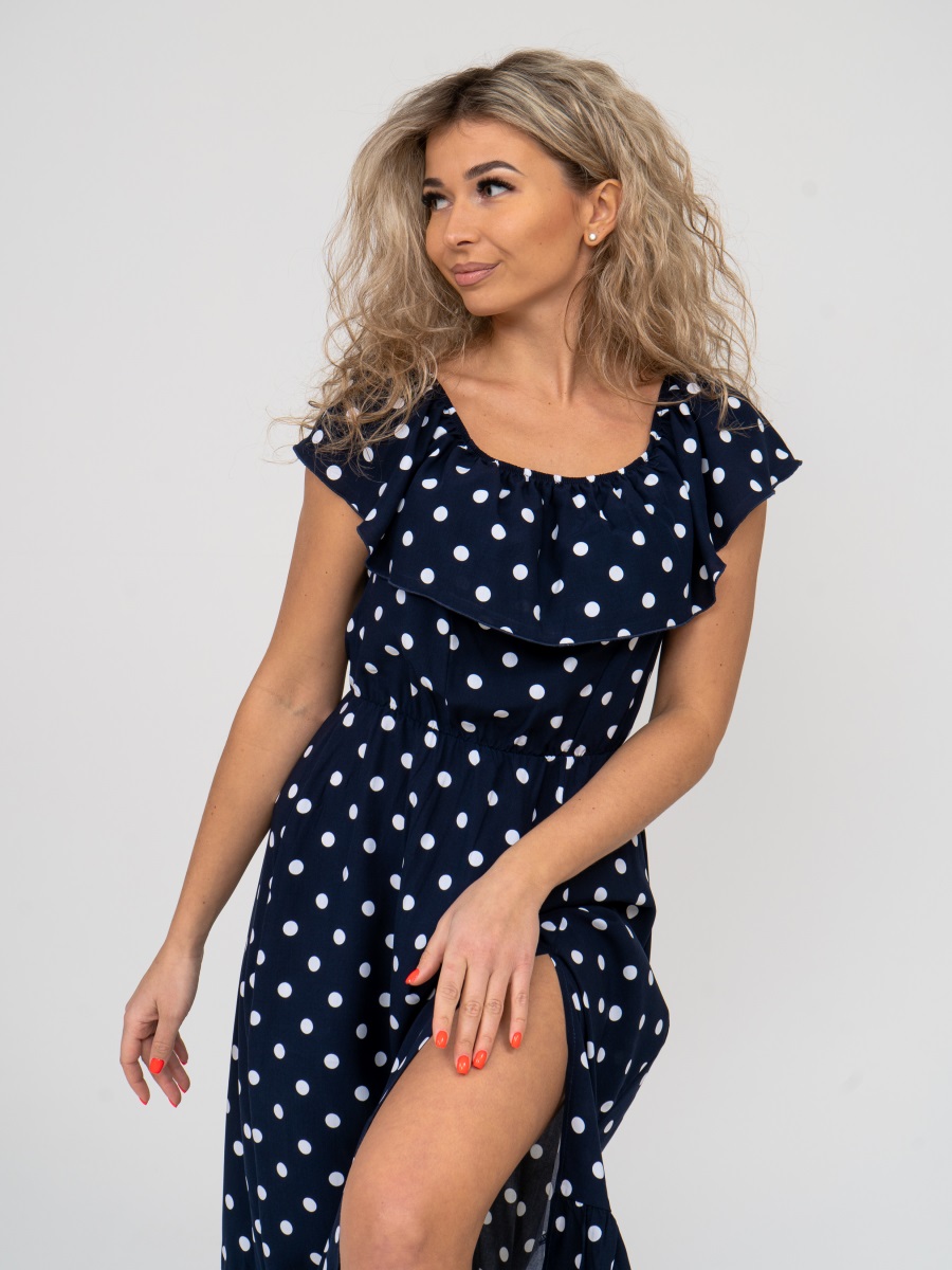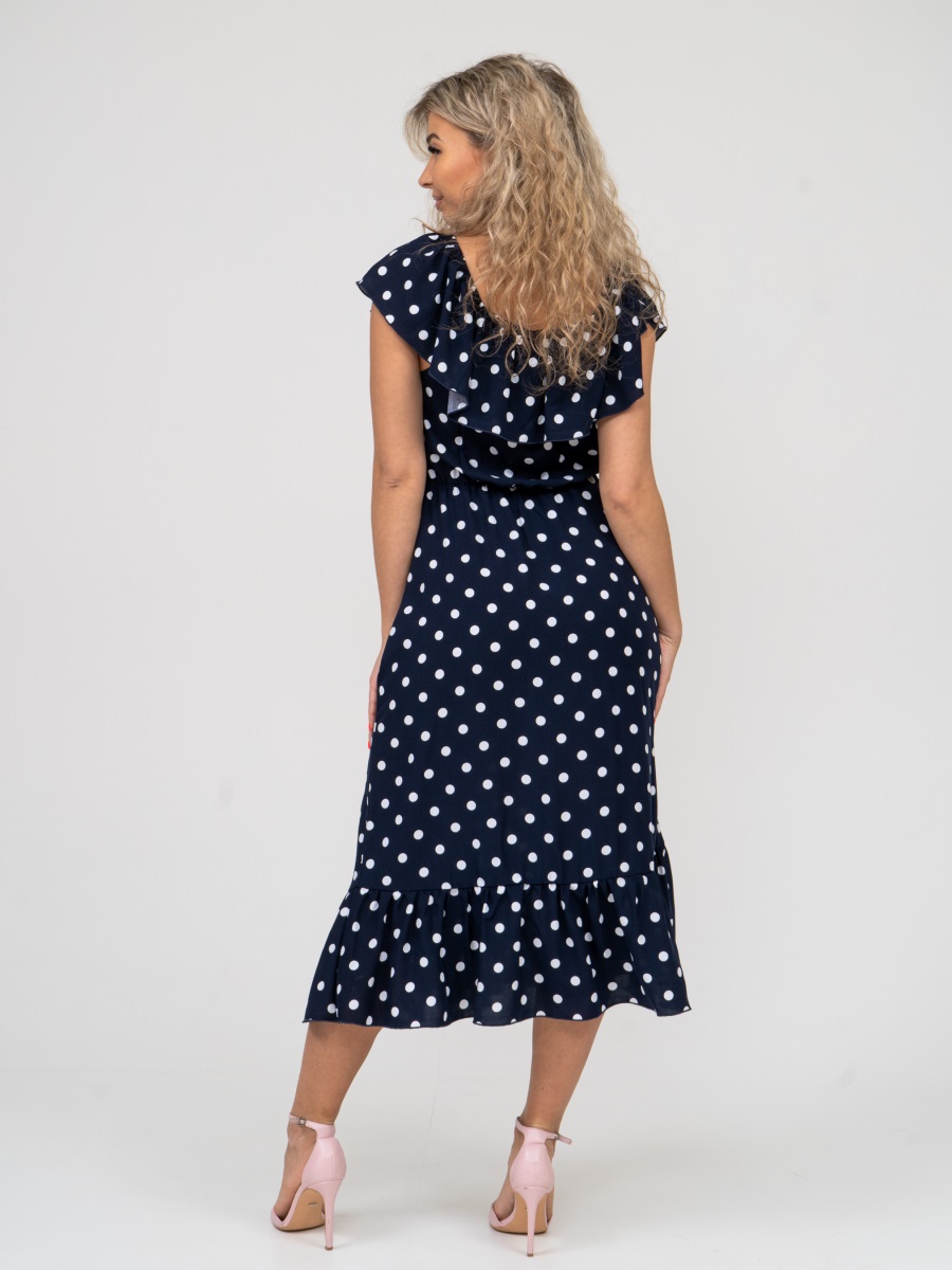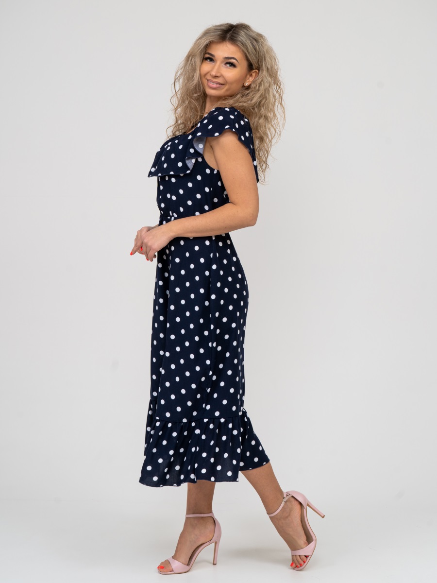 Женское легкое платье полуприлегающего силуэта. Имеет классический, всегда актуальный, рисунок - горошек.
