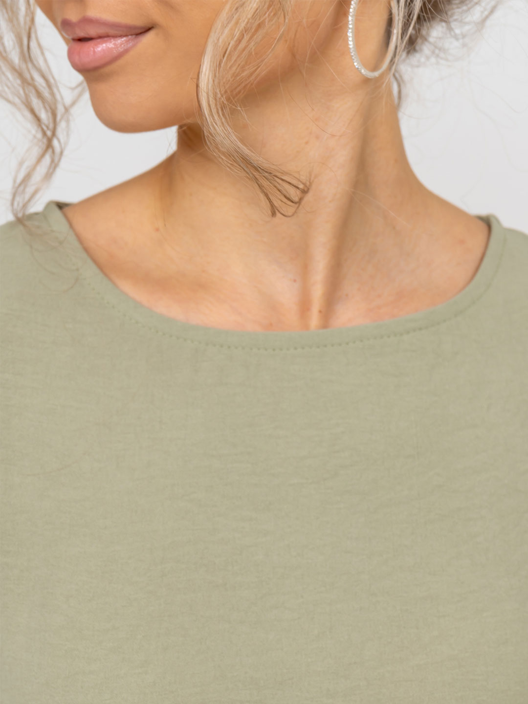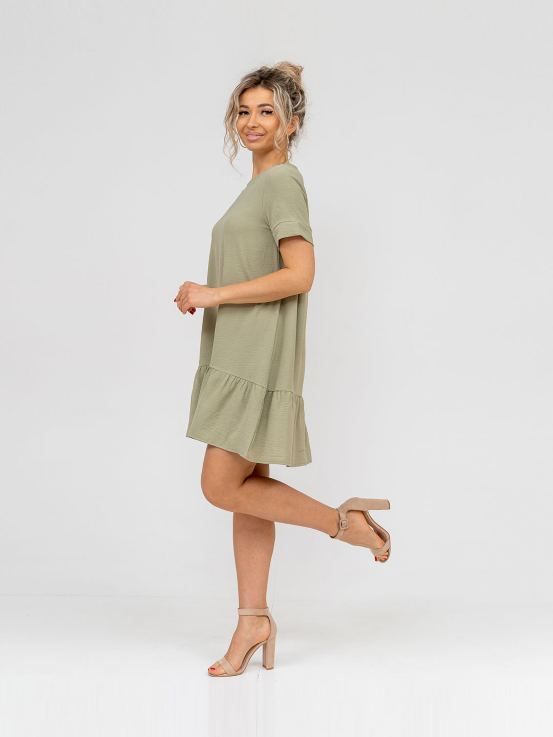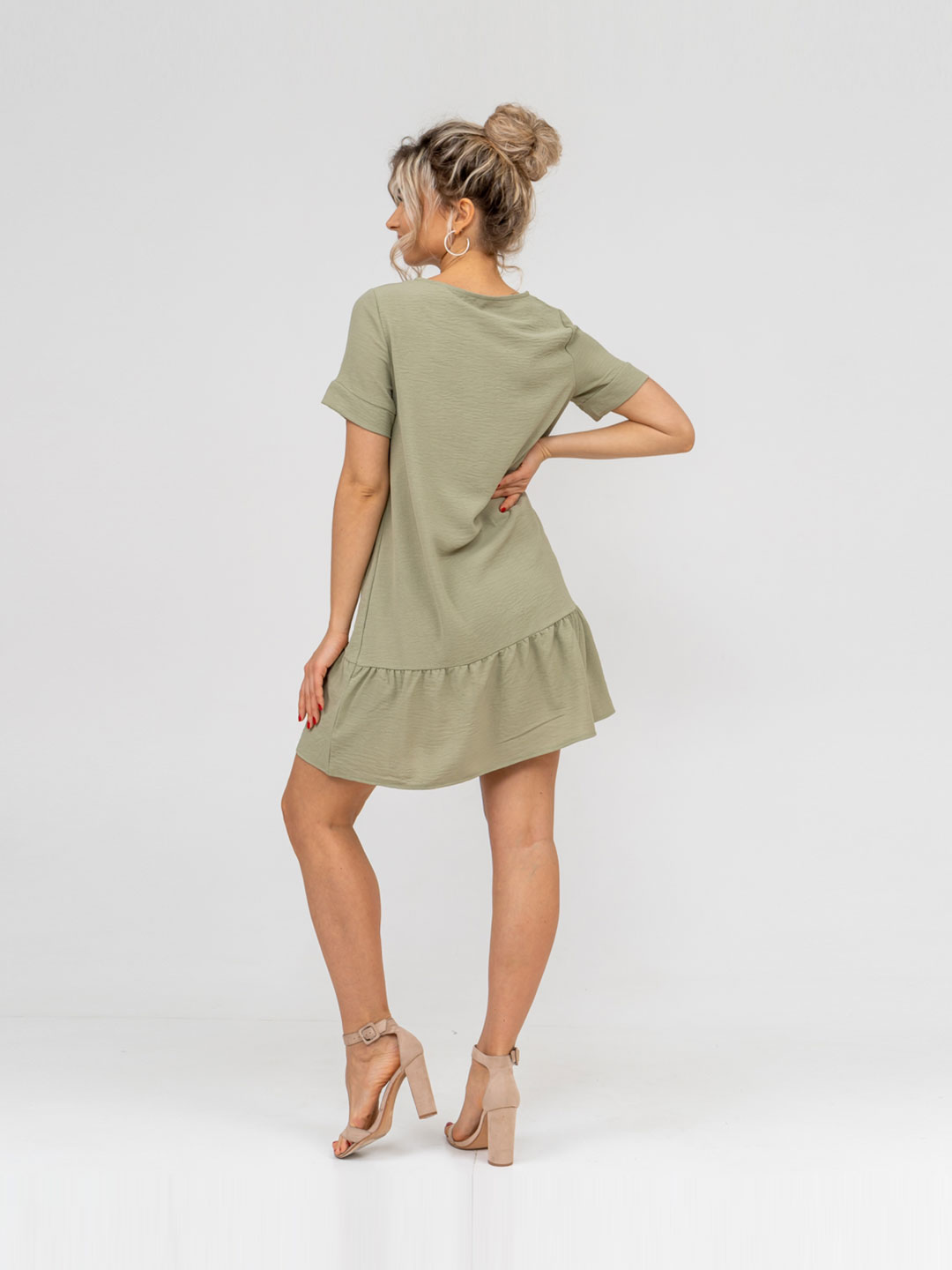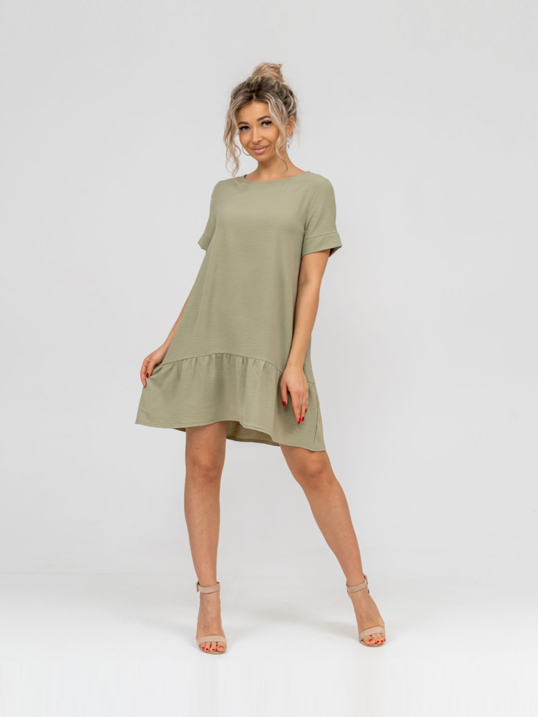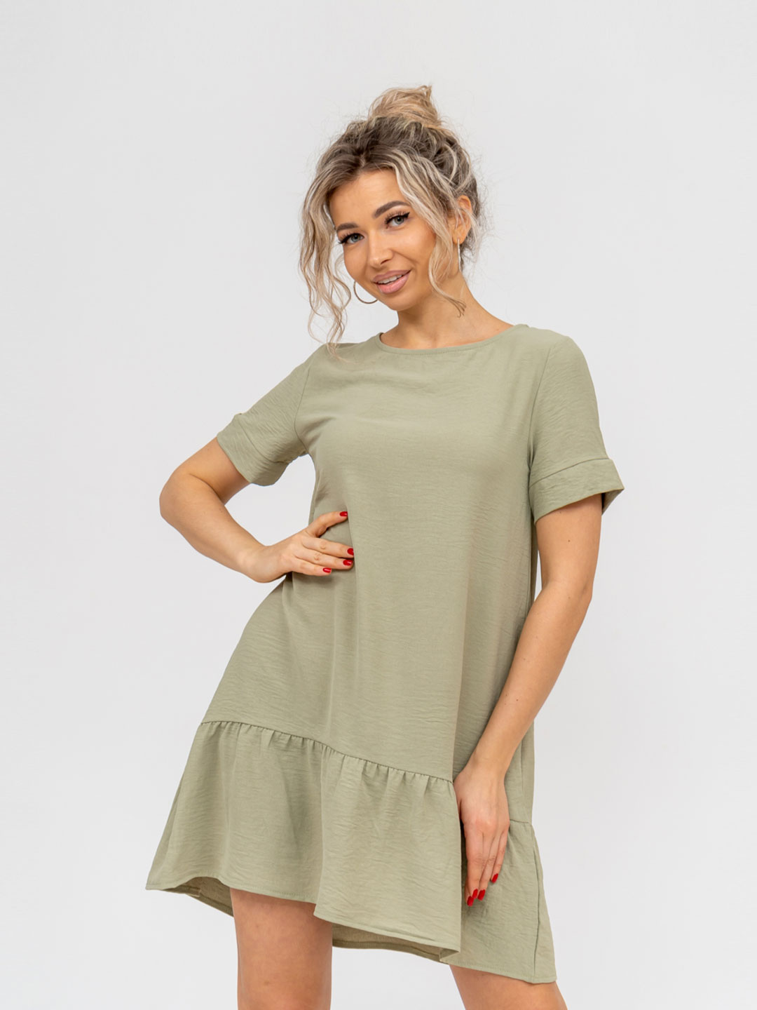 Воздушное платье с легким мятым эффектом, асимметричной линией низа, коротким рукавом и округлой горловиной. Платье подойдет на любой случай, дополните платье сандалями и шляпкой и вот у вас модный лук для пляжа, замените сандали на туфли, возьмите маленькую сумочку и вот отличный образ на работу или свидание.