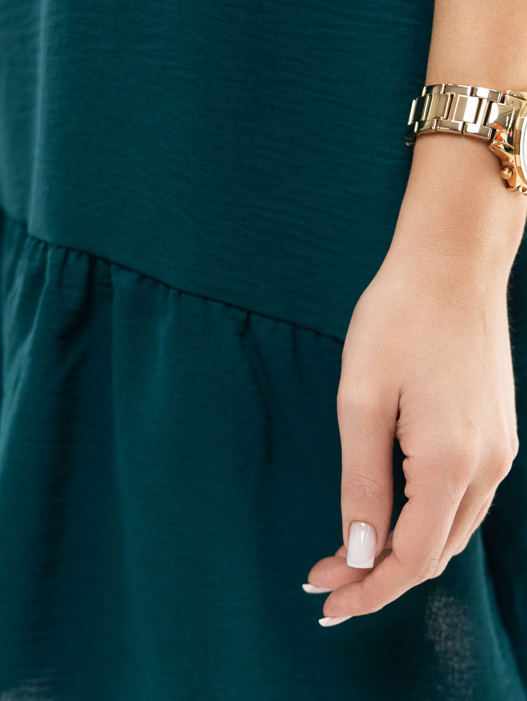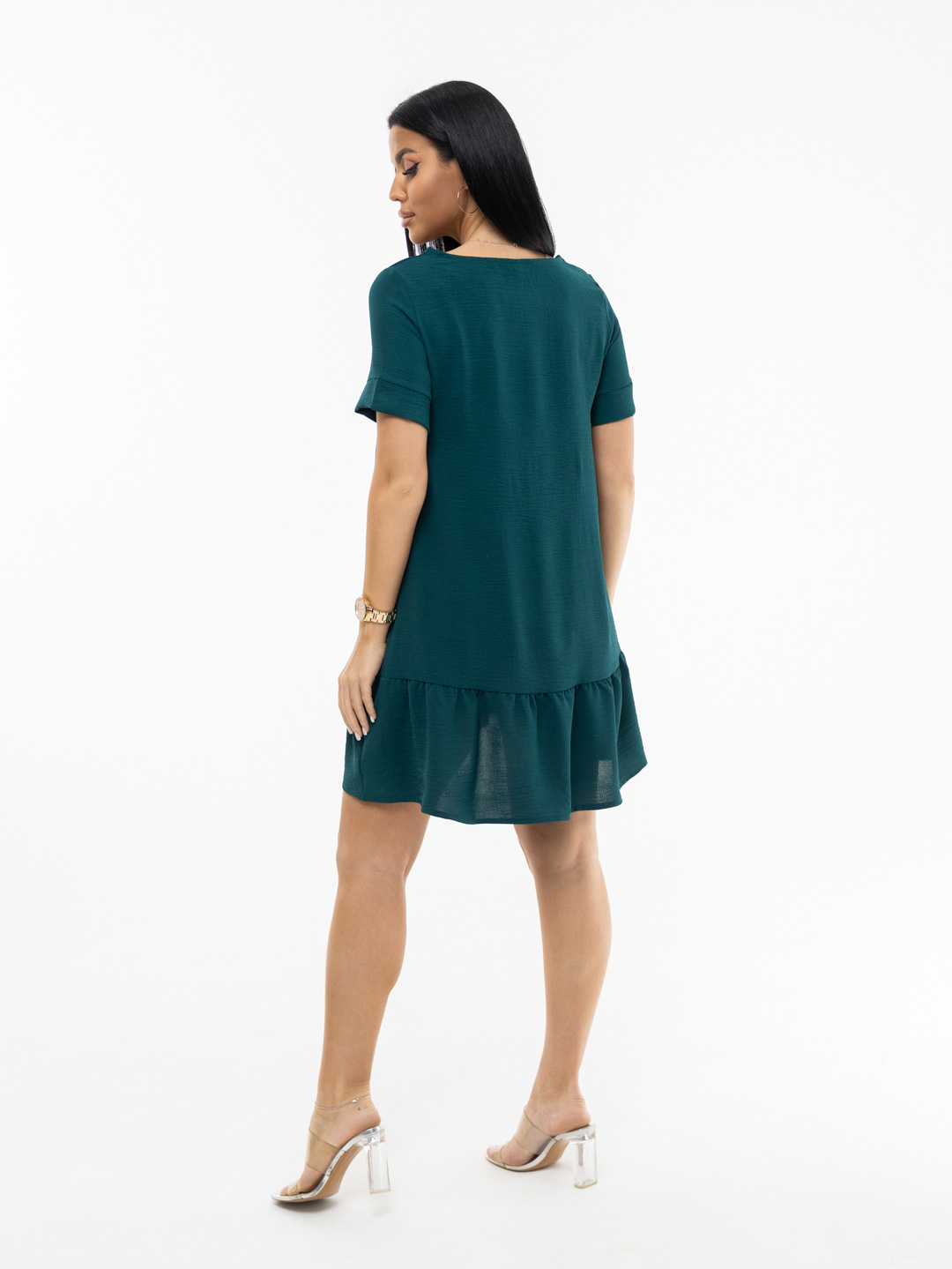 Воздушное платье с легким мятым эффектом, асимметричной линией низа, коротким рукавом и округлой горловиной. Платье подойдет на любой случай, дополните платье сандалями и шляпкой и вот у вас модный лук для пляжа, замените сандали на туфли, возьмите маленькую сумочку и вот отличный образ на работу или свидание.