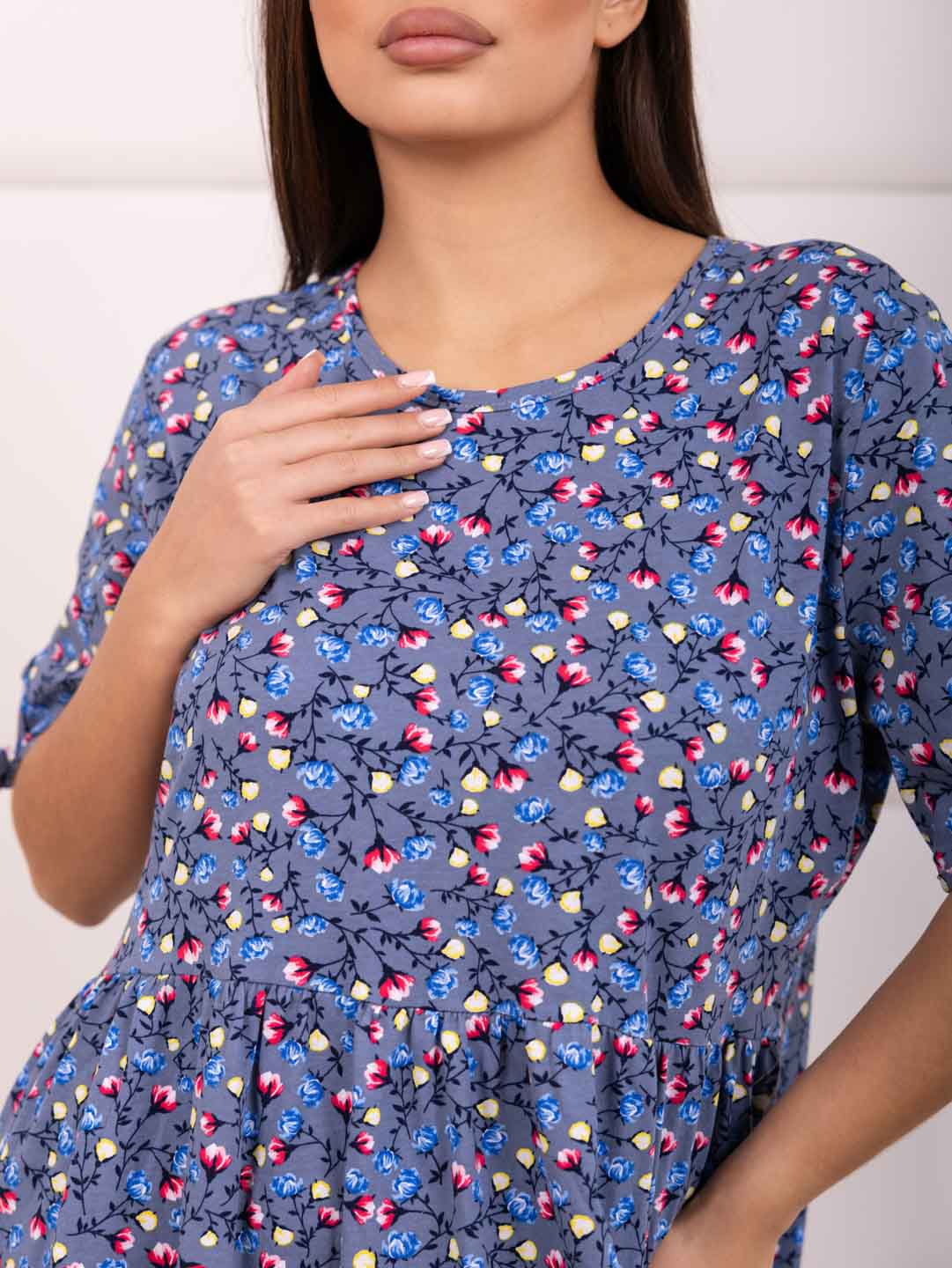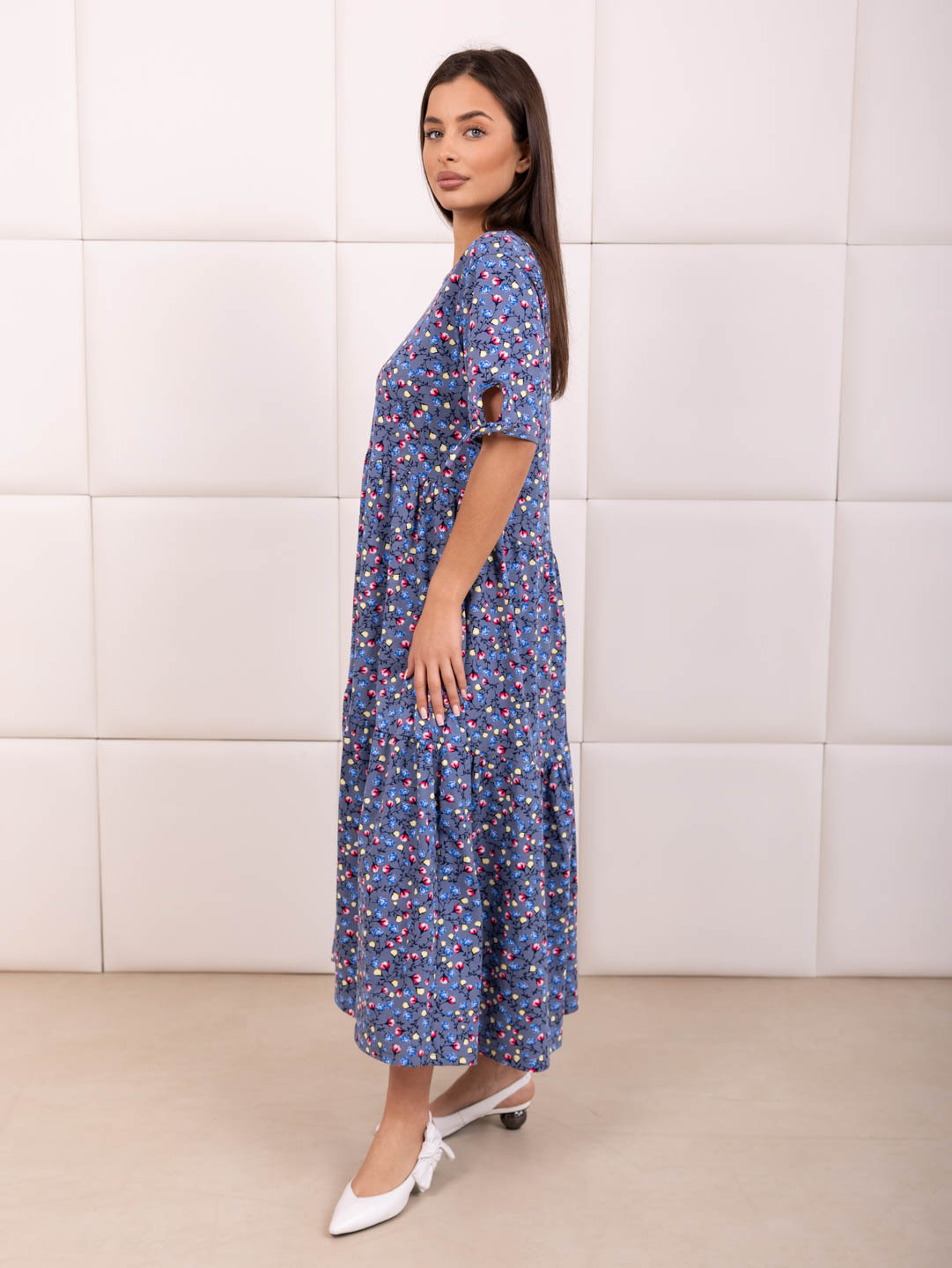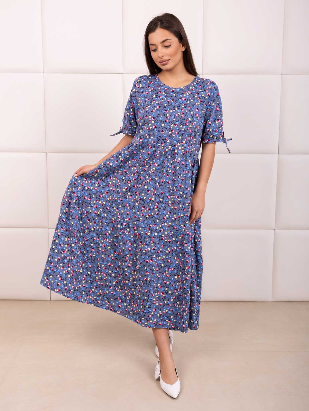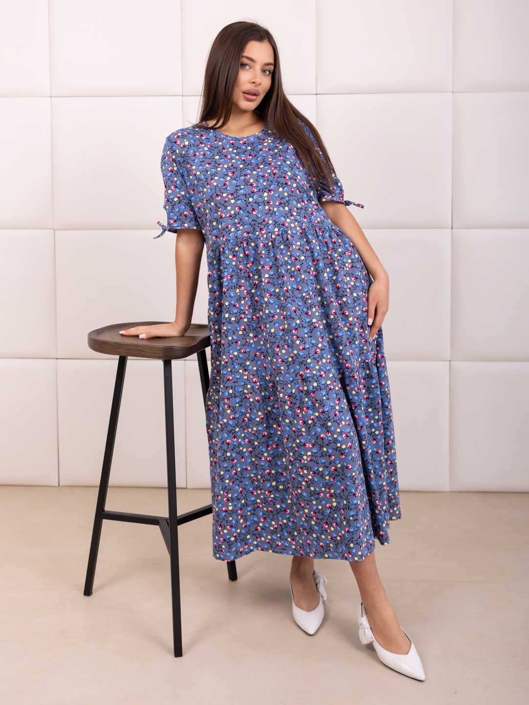 Хотите выглядеть стильно и комфортно этим летом? Предлагаем вам наше летнее женское хлопковое платье из кулирки! Кулирка – натуральное хлопковое полотно высокого качества. Идеальное сочетание легкости, комфорта и элегантности. Свободный крой платья позволит вам чувствовать себя уверенно. Короткий рукав делает платье универсальным и подходящим для повседневной носки, несколько рядов воланов добавит кокетливости в образ.