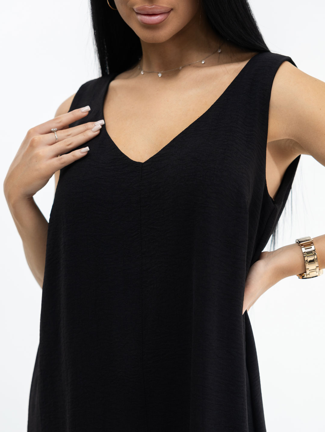 Платье макси с приоткрытой спиной и глубоким V-образным вырезом на передней части. Без рукавов. Легкое и элегантное. Подчеркивает достоинства и скрывает недостатки. Чтобы его хотелось надеть - повод не нужен.