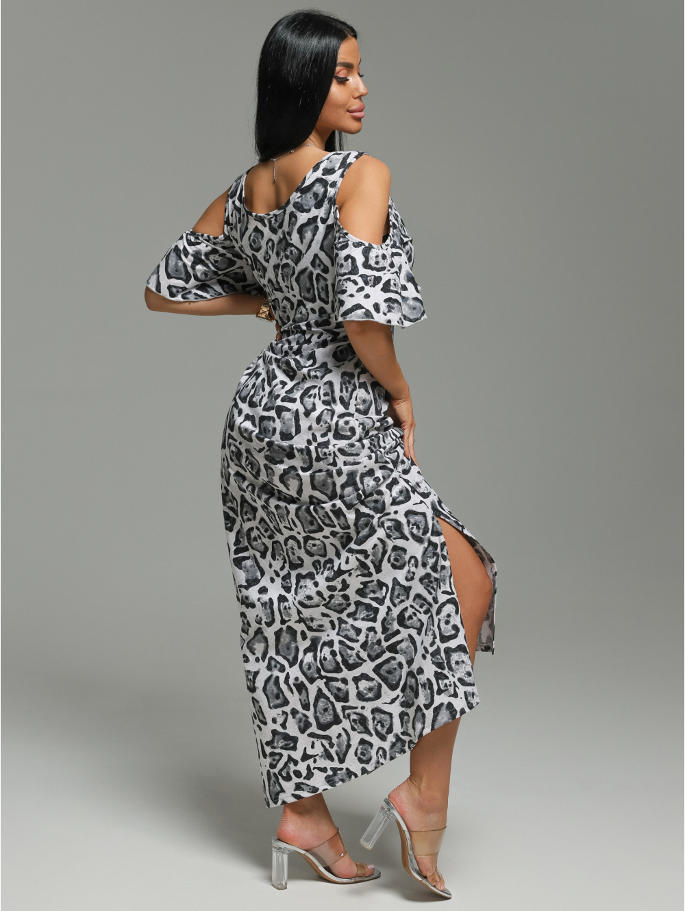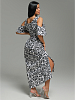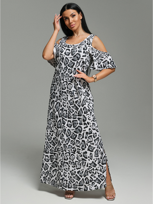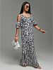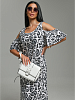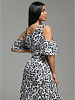 платье в форме трапеции дополняет рукав-волан с открытым плечом. Все это