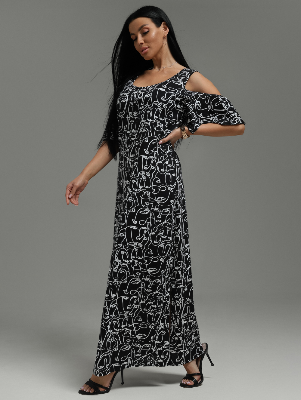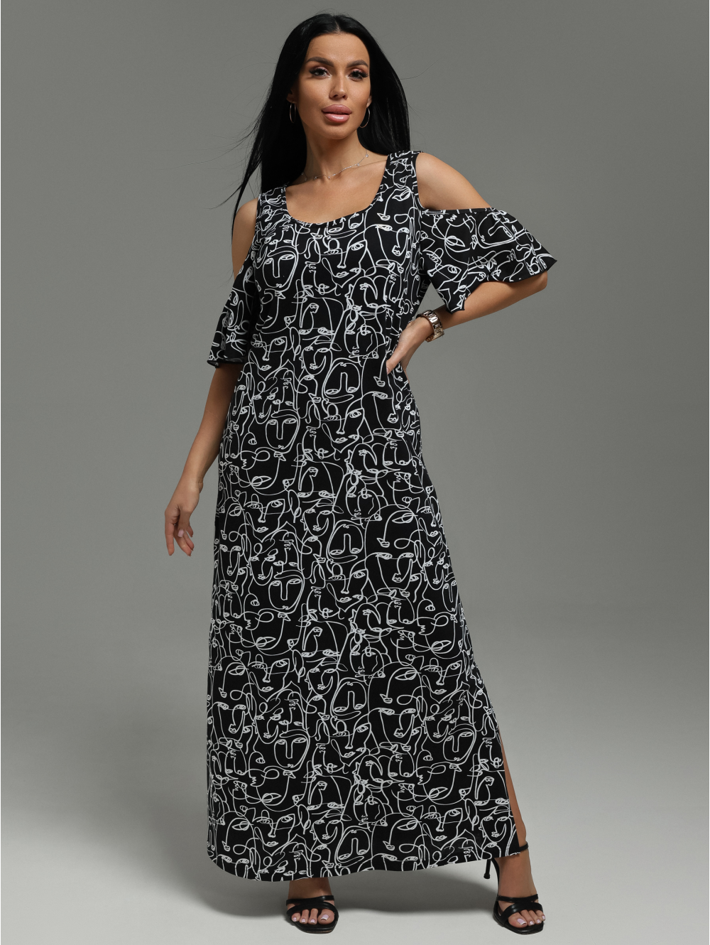 В жаркое время года требуется легкая, воздушная одежда, не стесняющая движений. В приоритете открытые, свободные фасоны. Как правило, для такого периода шьются летние платья из тонких, дышащих материалов. Одно из таких вариантов – платье НОВЕЛЛА, изготовленное из 100% -го хлопка. Длинное, с разрезами по бокам, платье в форме трапеции дополняет рукав-волан с открытым плечом. Все это создает летний и приятный образ.