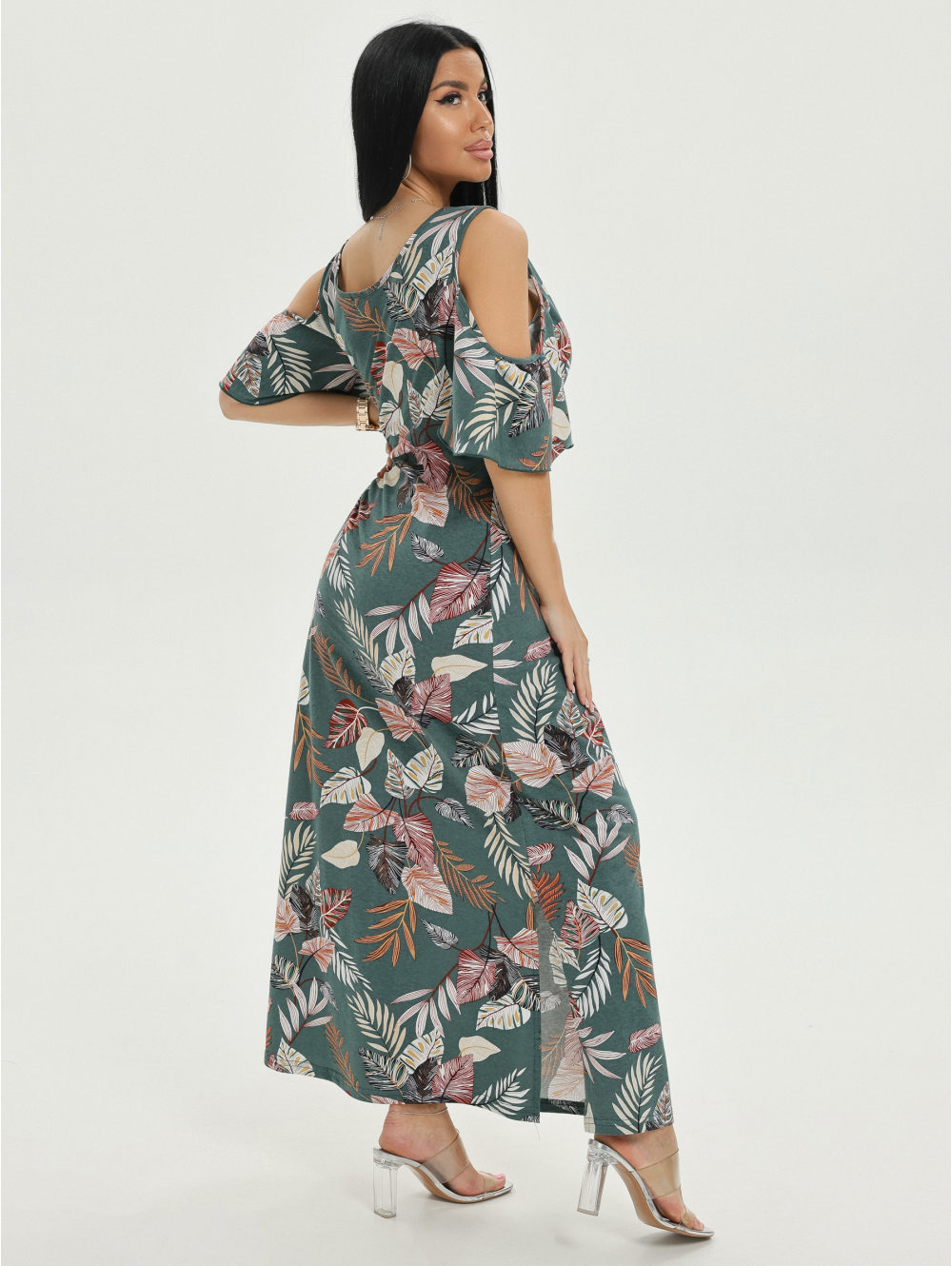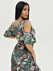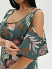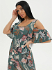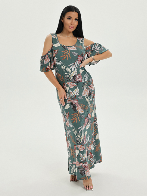 платье в форме трапеции дополняет рукав-волан с открытым плечом. Все это