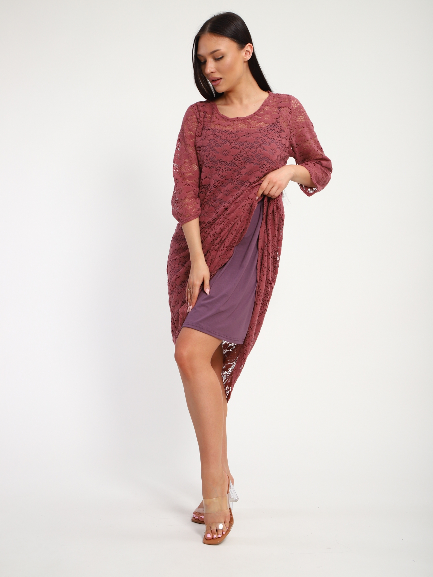 Женское платье из гипюра с вискозой — это нарядная модель, которая сочетает лёгкость гипюра и мягкость вискозы. Такие платья часто используются для торжественных мероприятий, вечерних выходов или праздников.