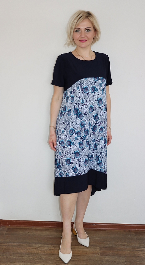 Женское платье П2051.3 с короткими рукавами и ассиметричным подолом.