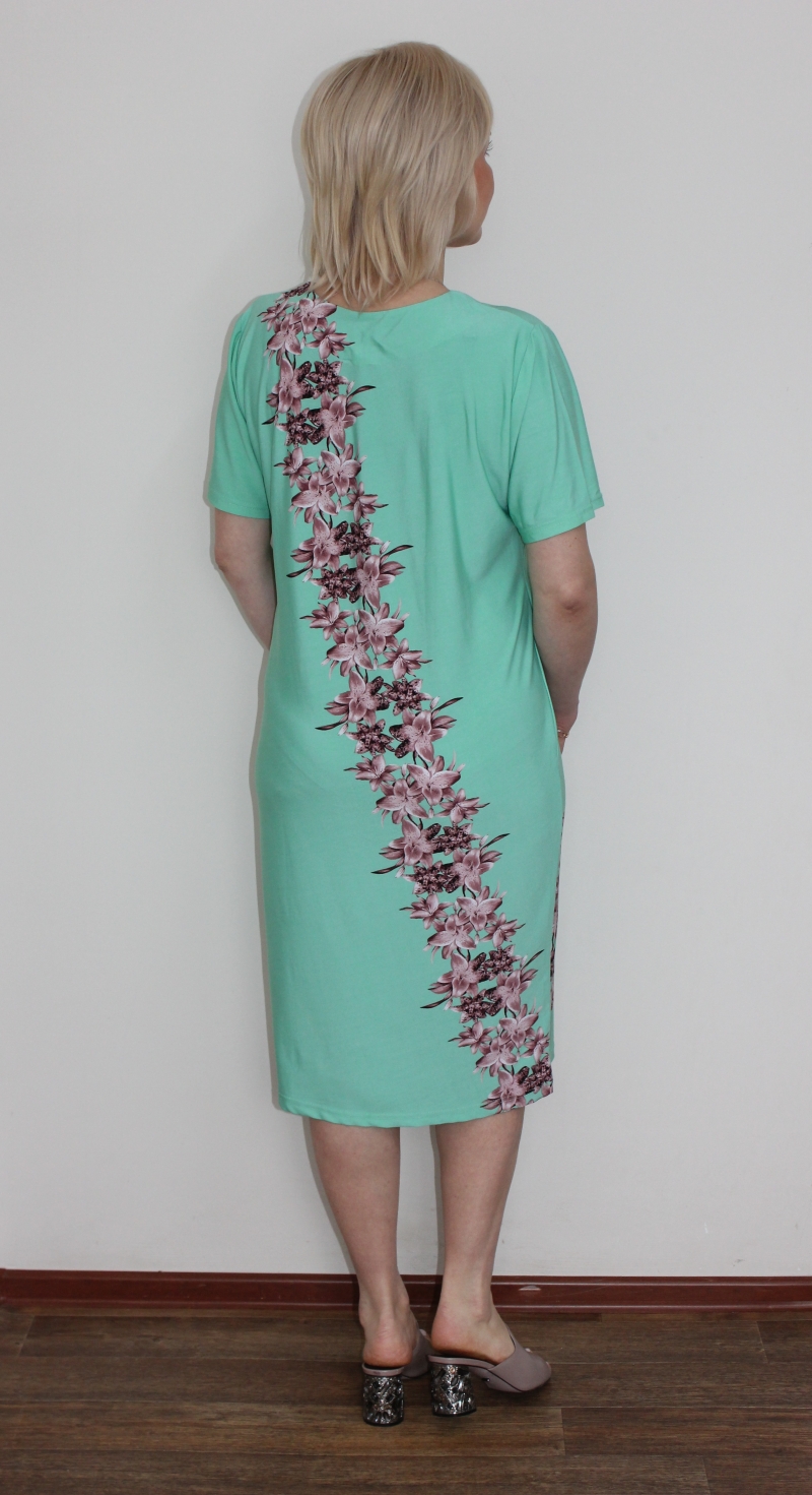 Женское платье П2100.1 отшивается из трикотажного полотна. Женское платье с короткими рукавами имеет широкий размерный ряд и яркую летнюю расцветку.