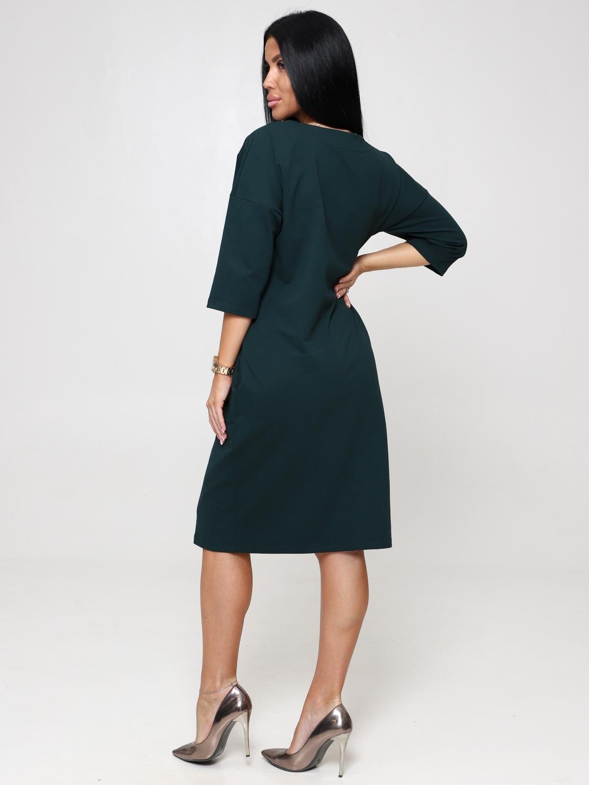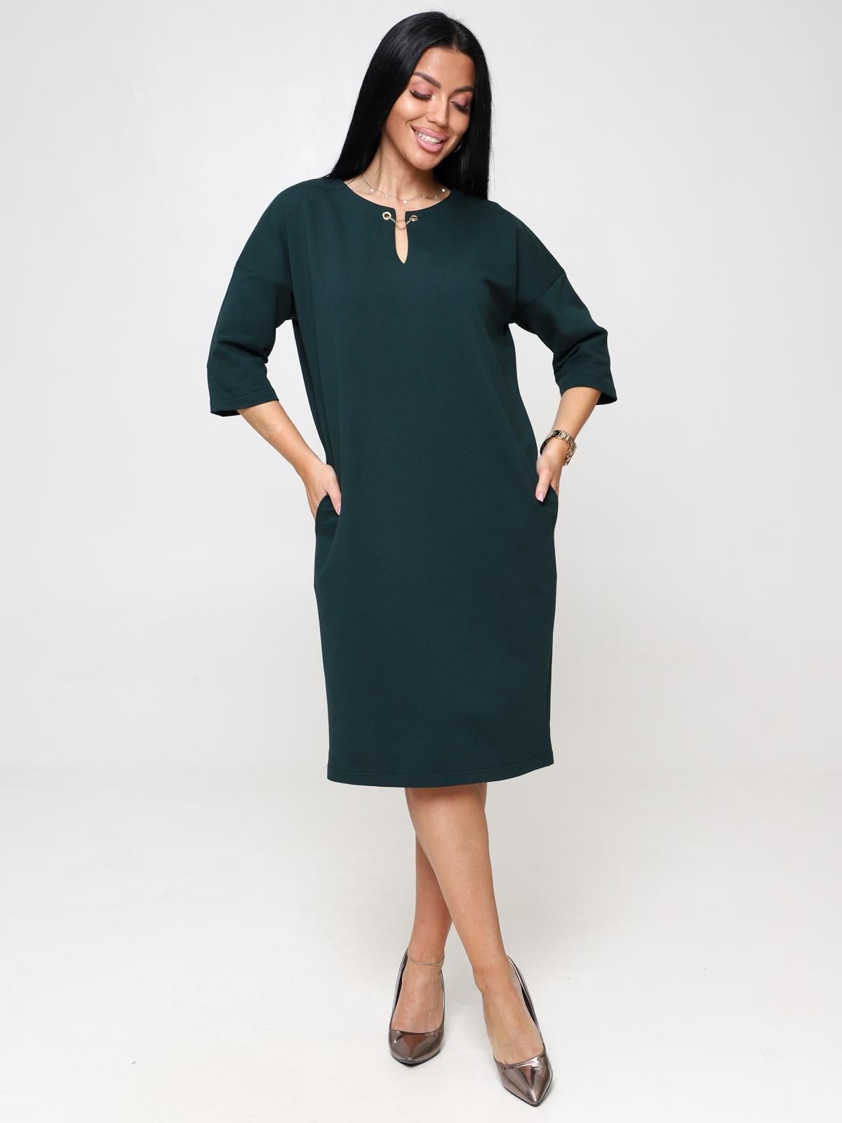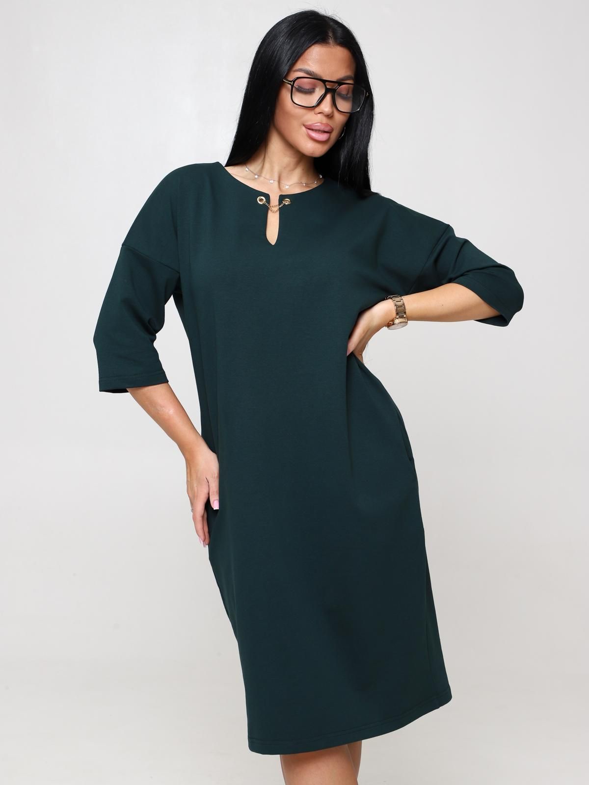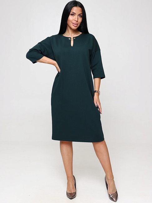 Платье подойдет для торжественного случая, а так же для повседневной носки. Модель прямого силуэта, длиной до колен, с карманами в боковых швах, рукав ¾. Модная, универсальная модель походит всем - стройным женщинам и дамам с формами.
