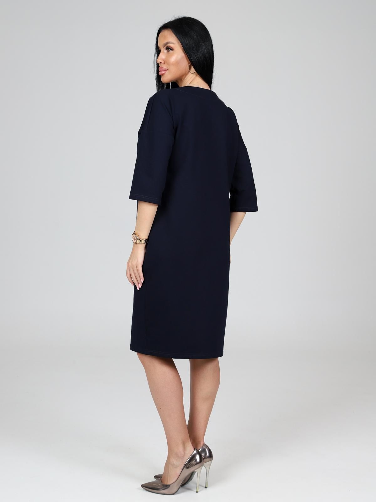 Платье подойдет для торжественного случая, а так же для повседневной носки. Модель прямого силуэта, длиной до колен, с карманами в боковых швах, рукав ¾. Модная, универсальная модель походит всем - стройным женщинам и дамам с формами.
