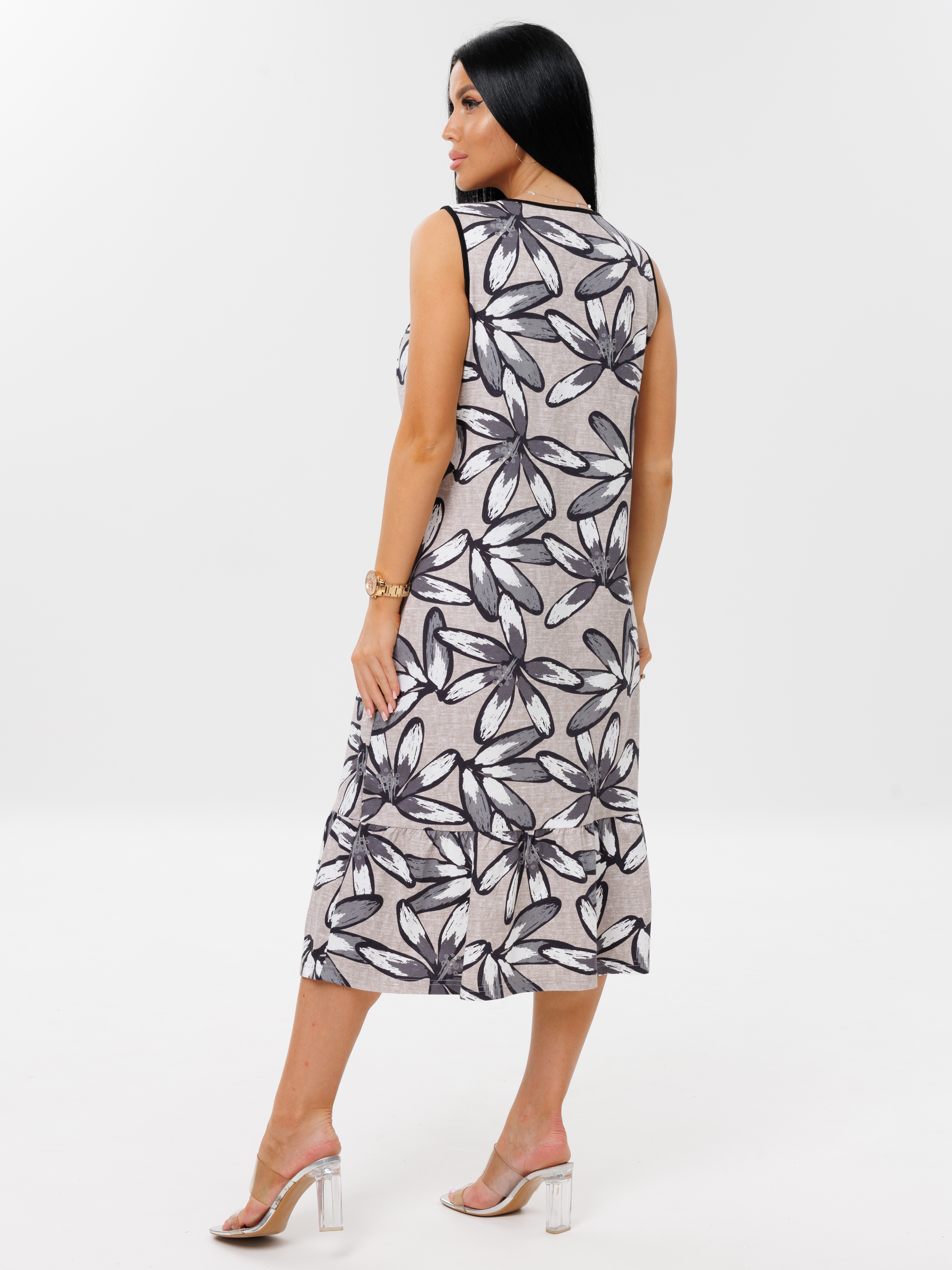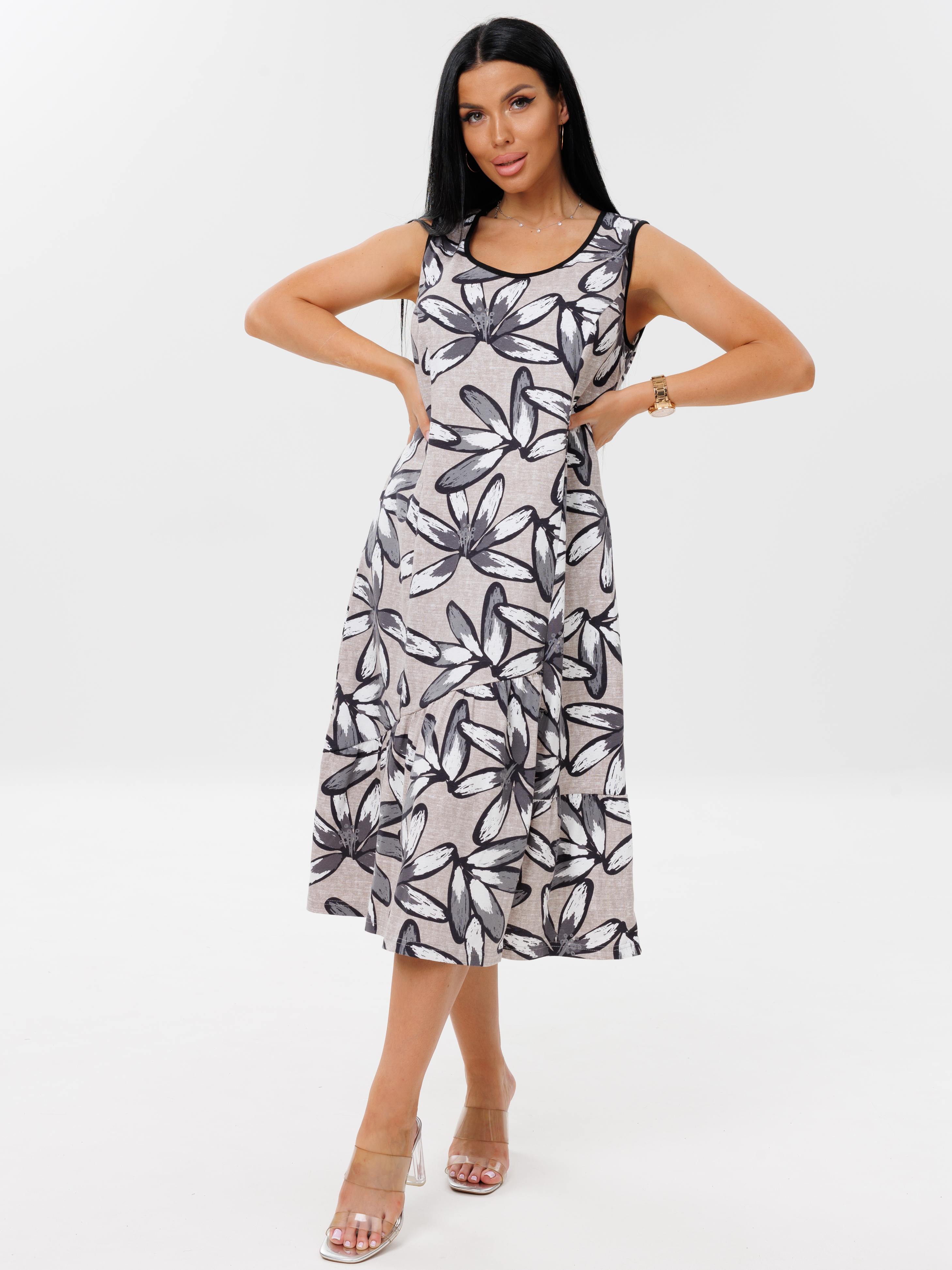 Женское платье Пл-111(К) / Серый (цветы)
