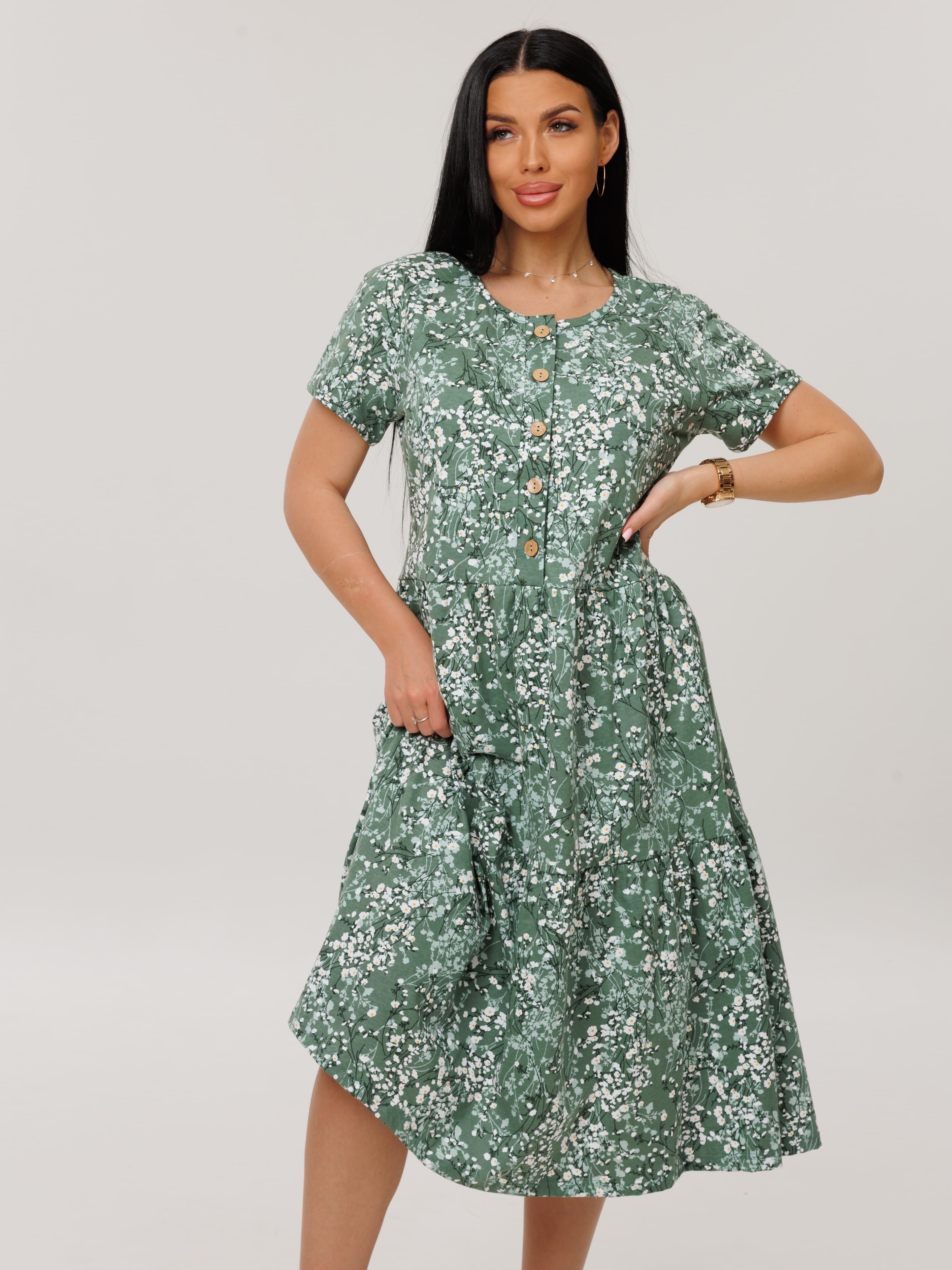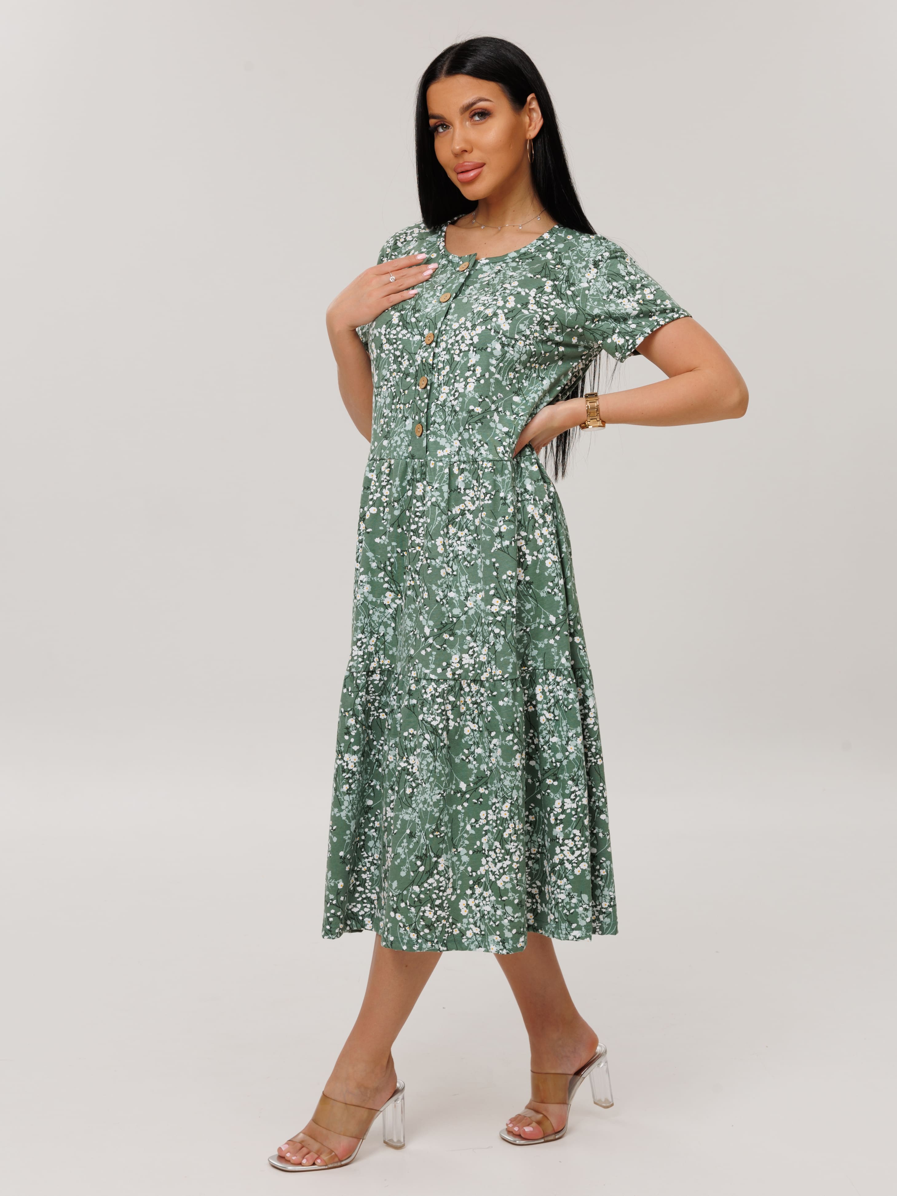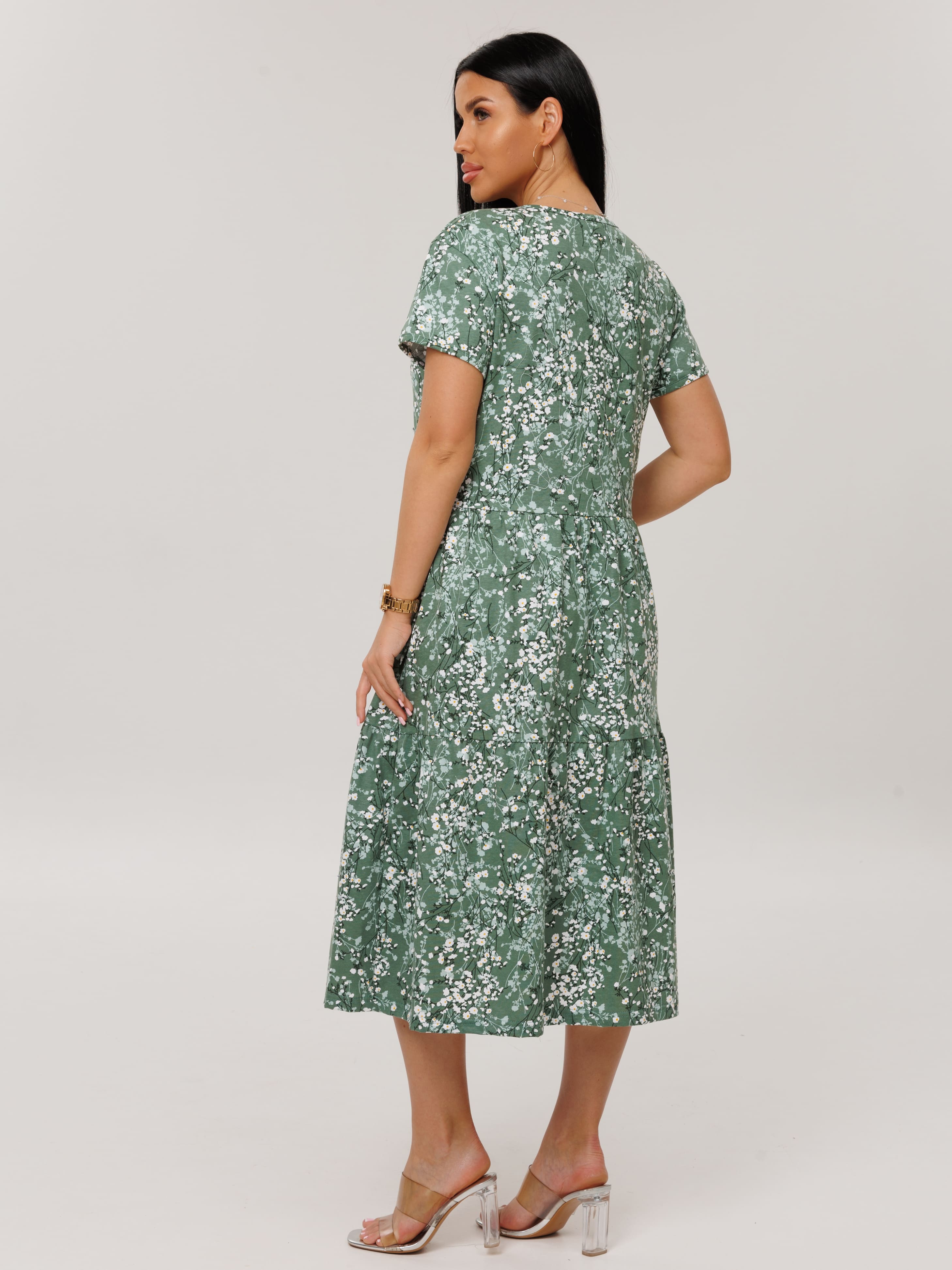 Женское платье Пл-116(К) / Зеленый (цветы)