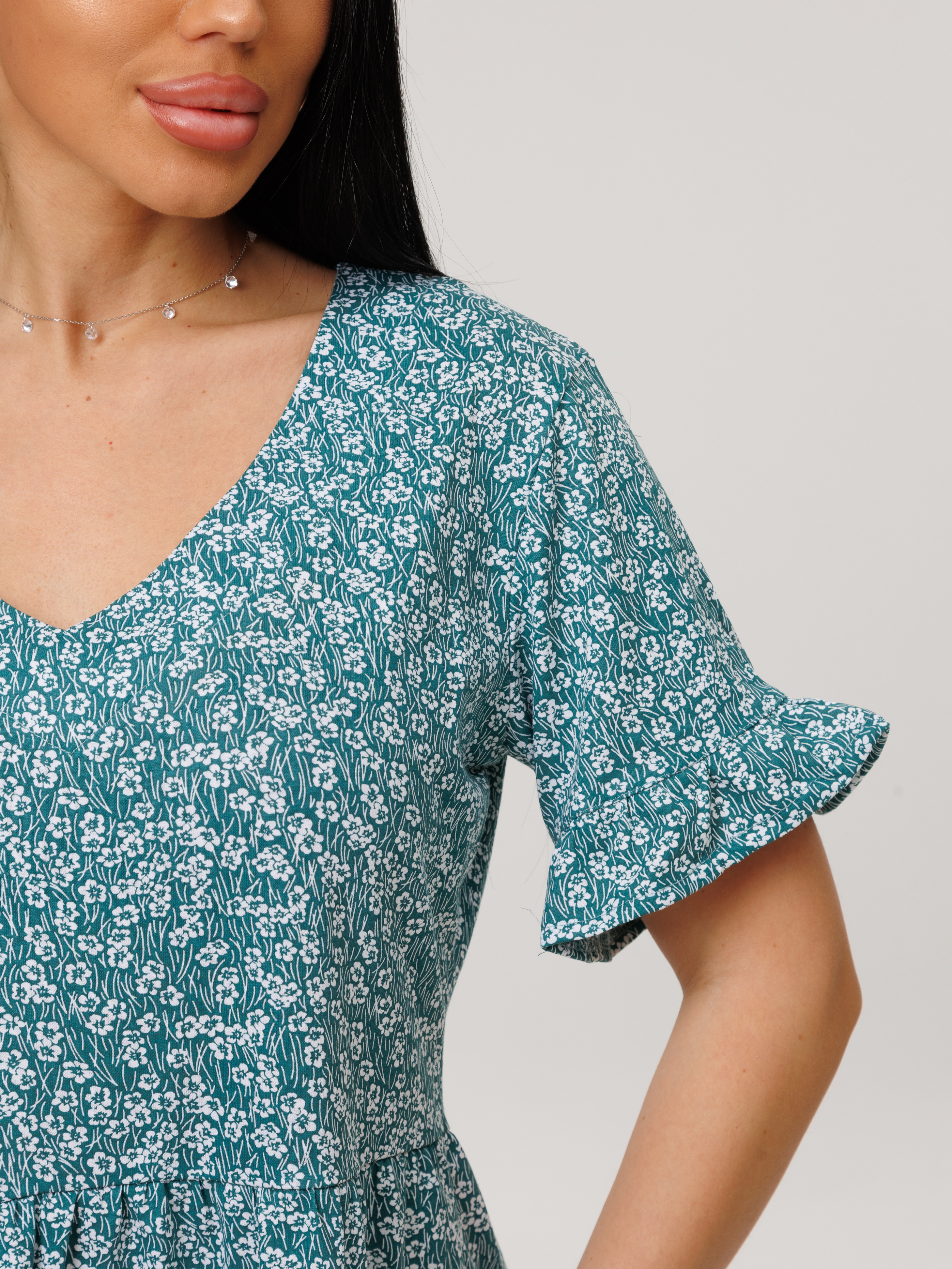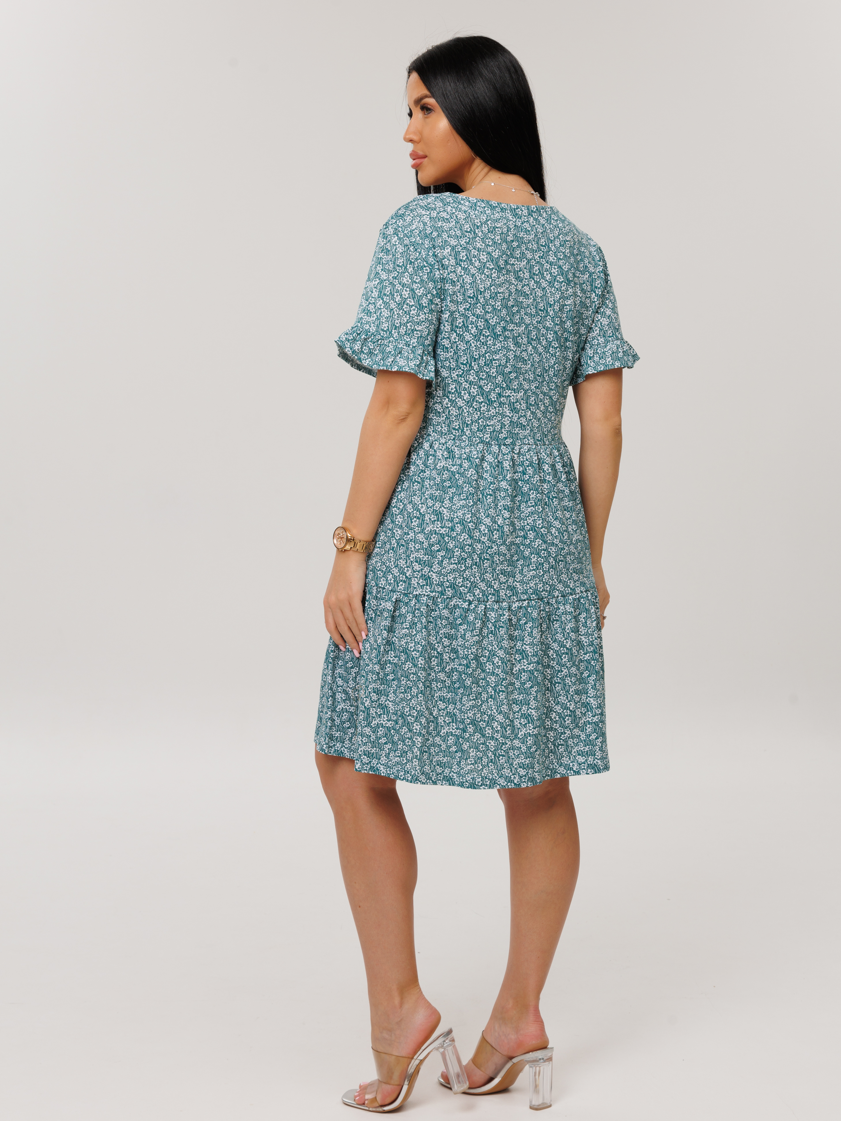 Женское платье Пл-117(К) / Бирюзовый (цветы)
