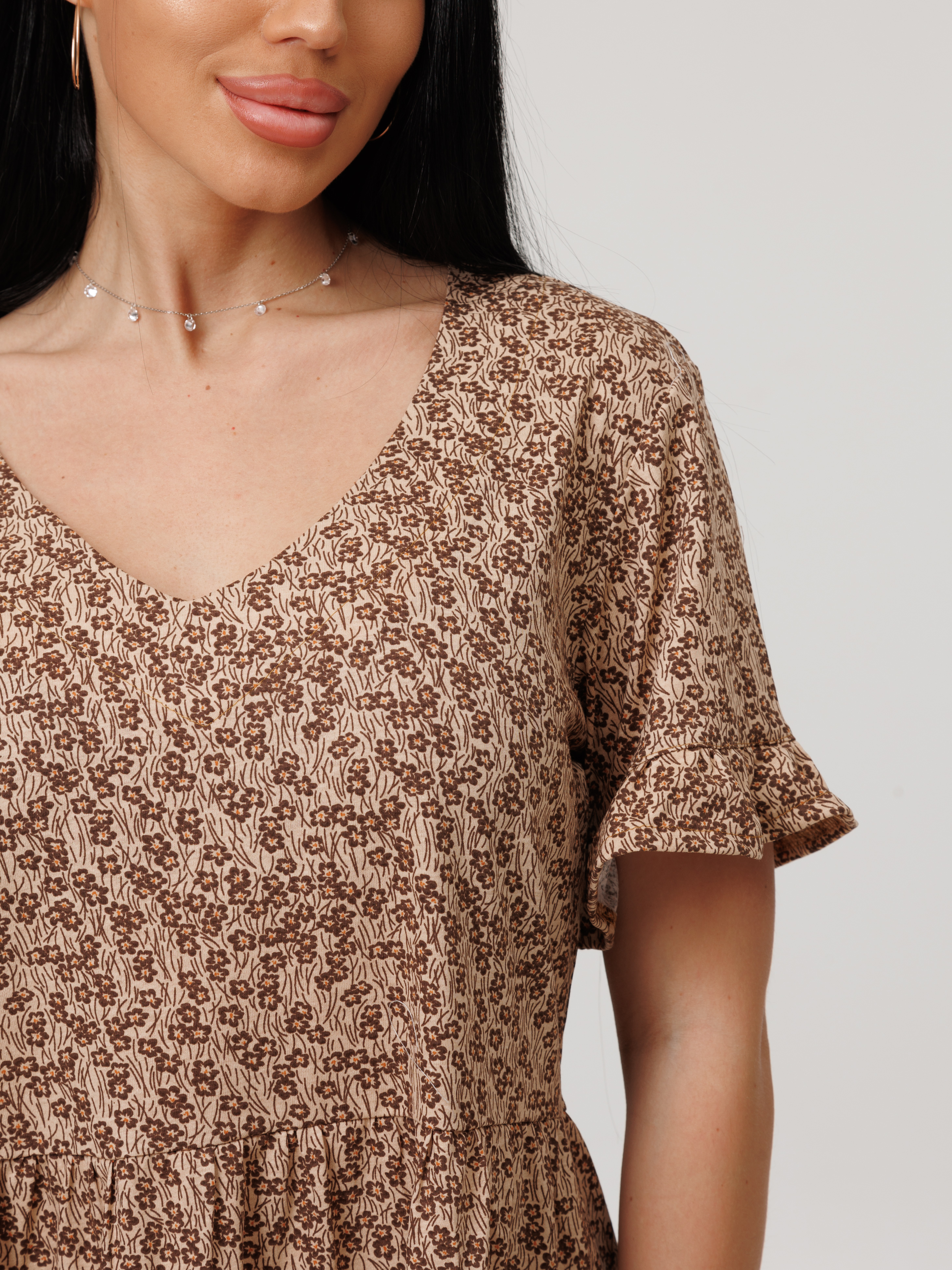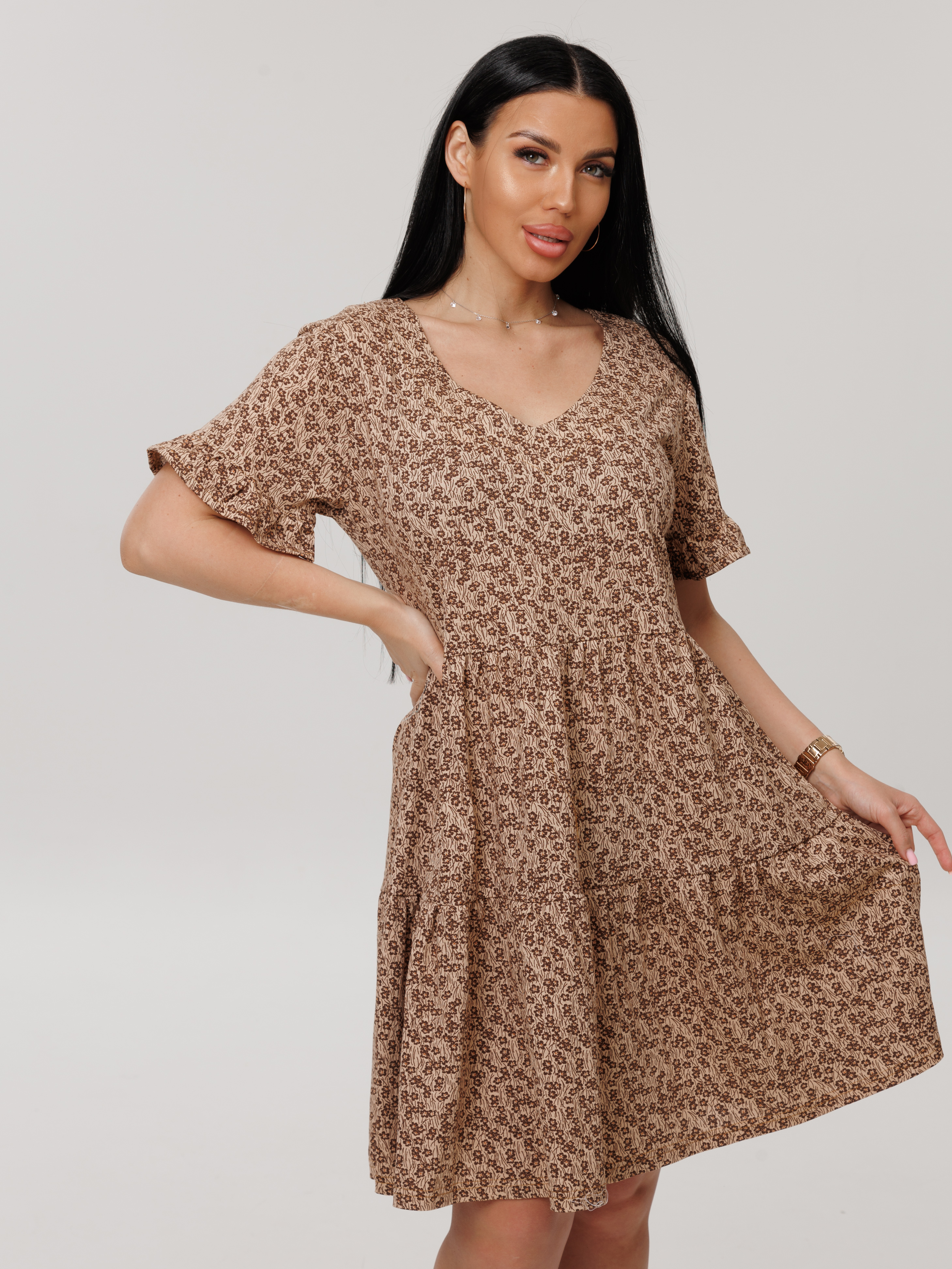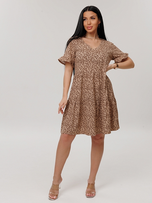 Женское платье Пл-117(К) / Коричневый (цветы)