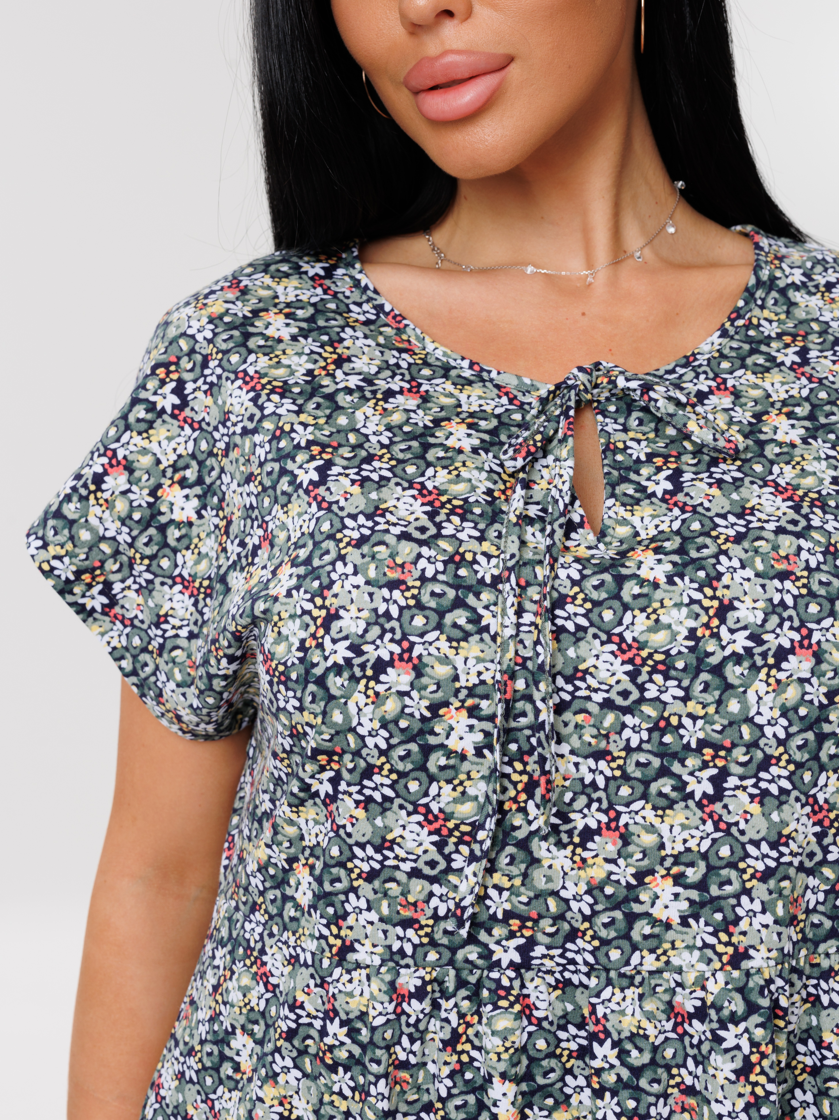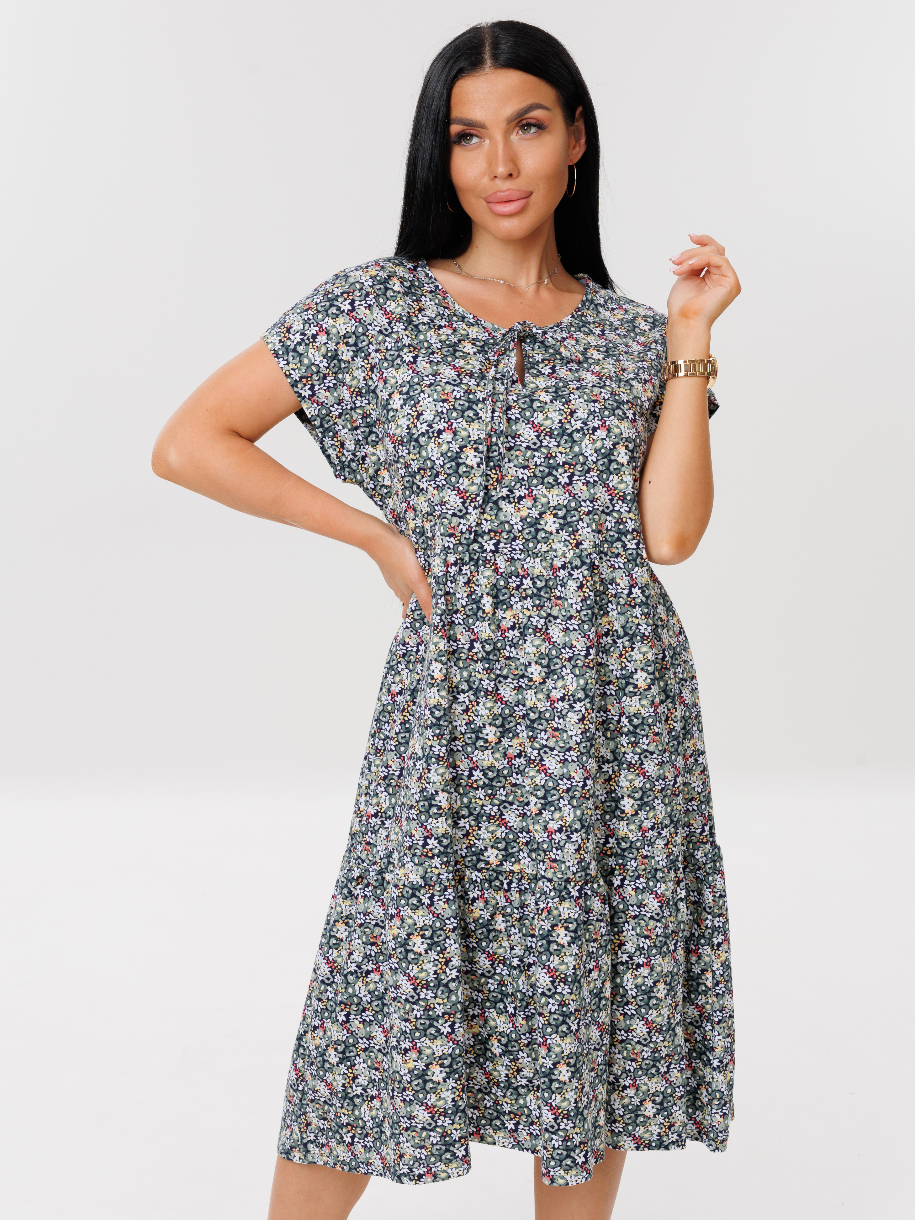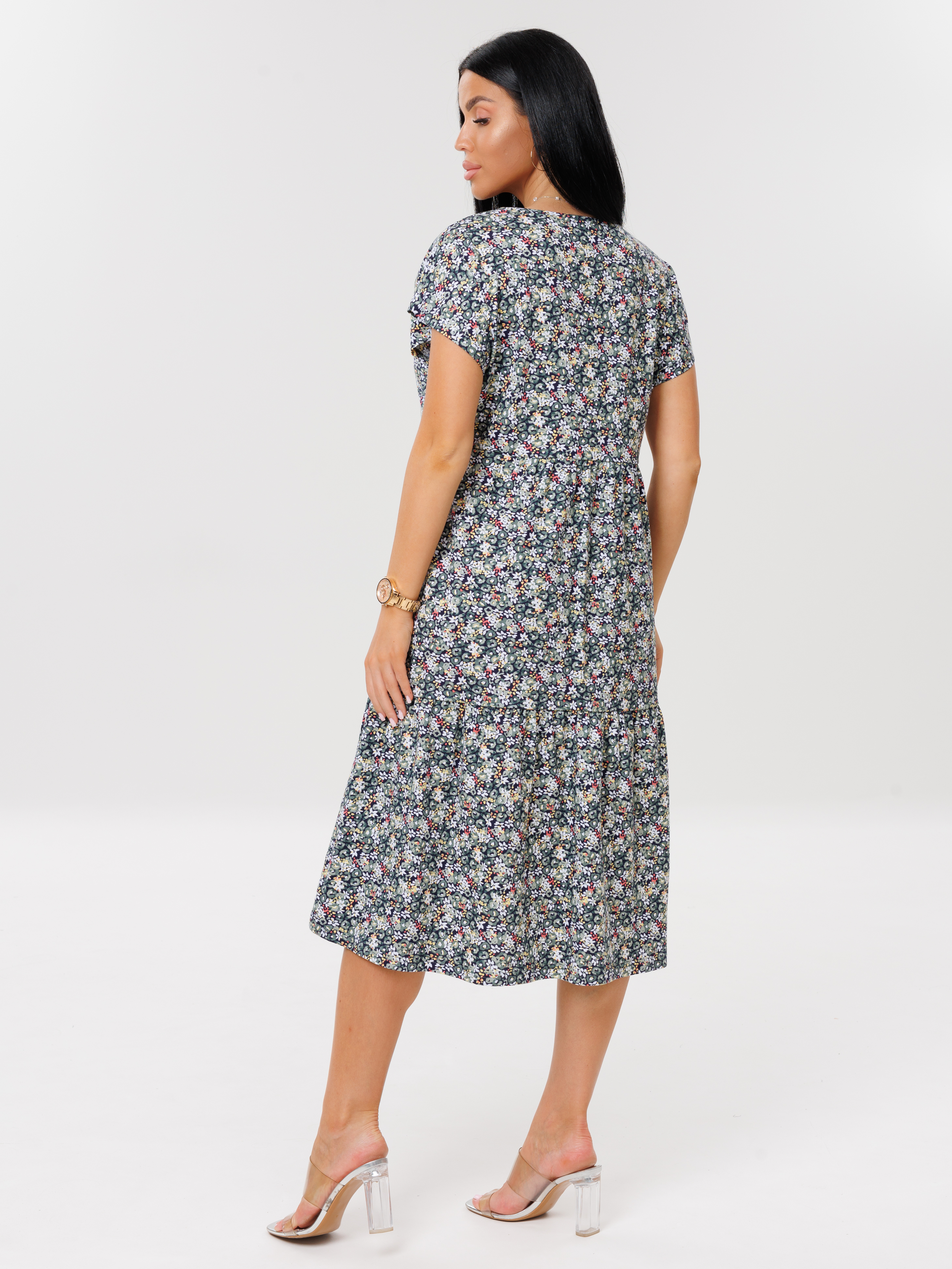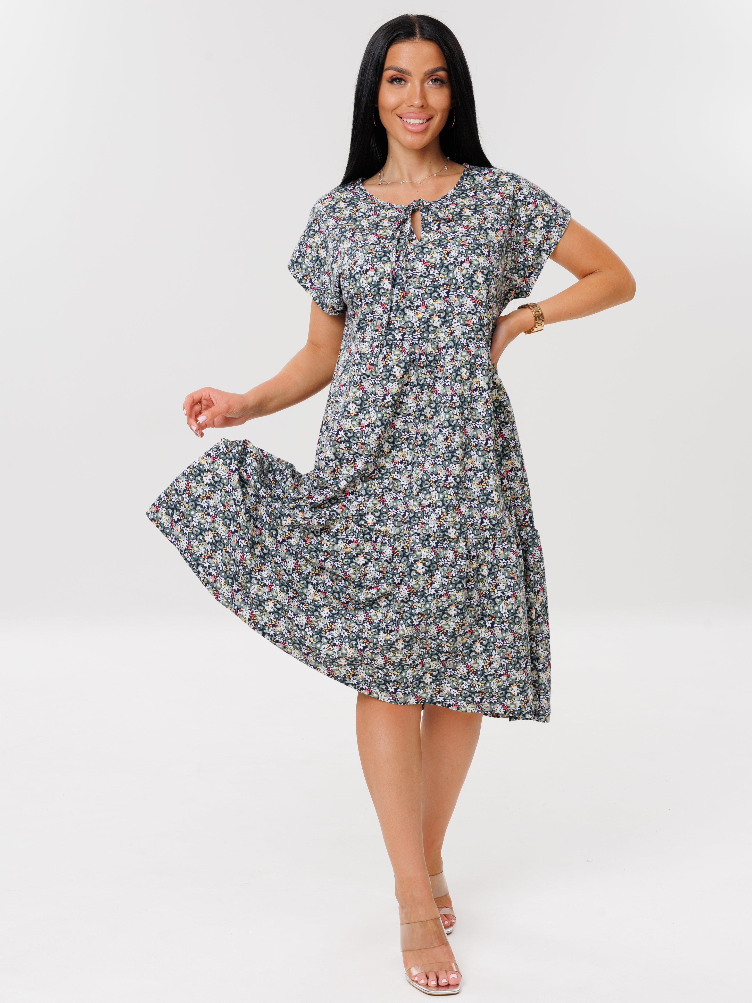 Женское платье Пл-64(К) / Серо-зеленый (цветы)