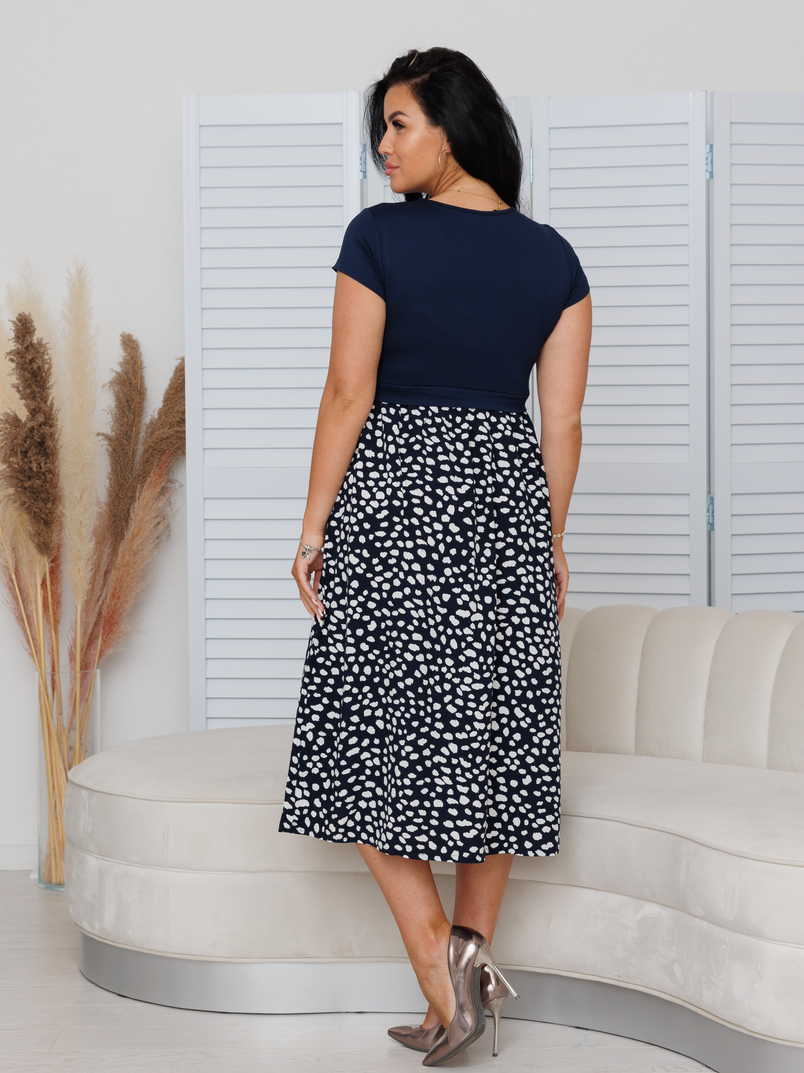 Женское платье Пл-88(Шт/Вис) / Темно-синий (камешки) из комбинированной ткани - штапеля и вискозы. Летнее платье с широкой юбкой с ярким принтом - идеальный вариант для жарких дней.