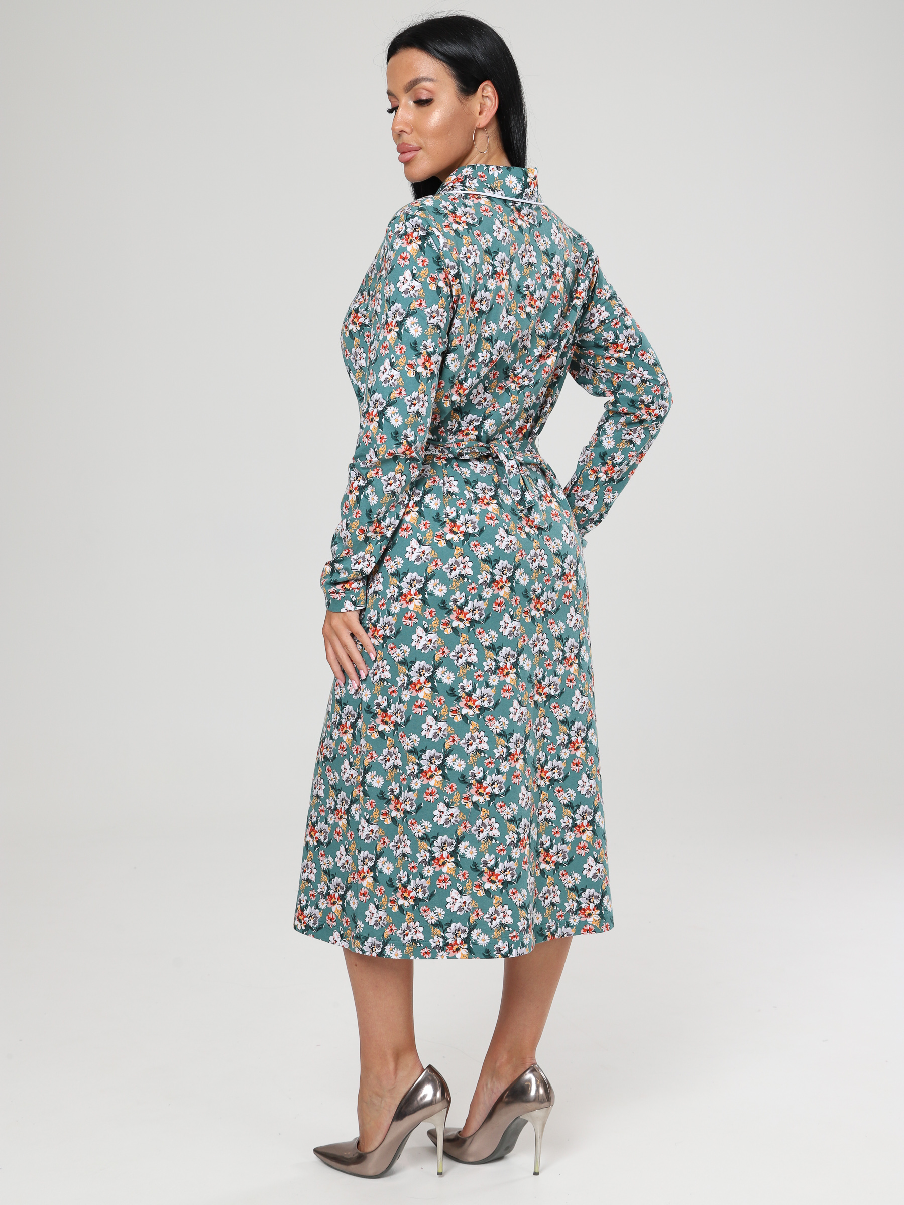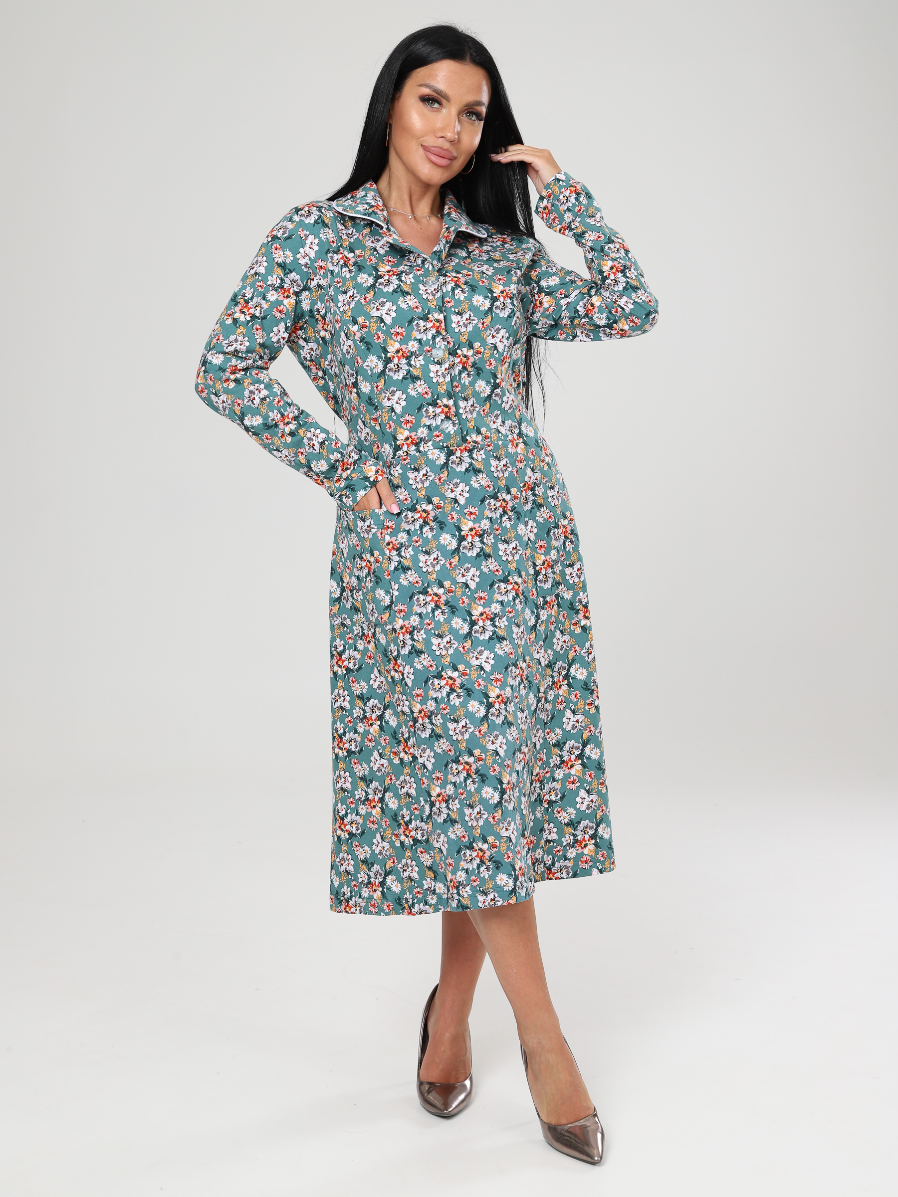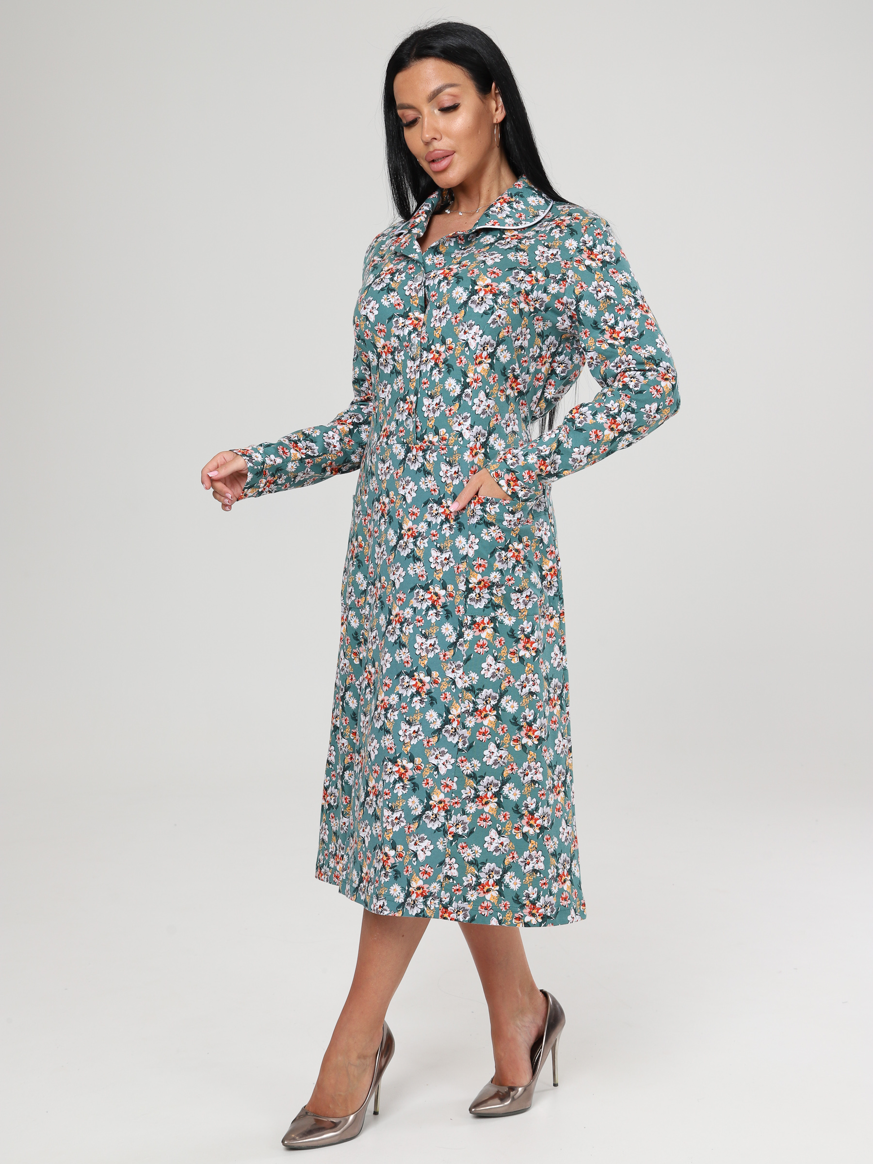 Платье трикотажное: воротник с атласным белым кантом, втачной короткий рукав, 2 вместительных кармана. Верх платья на пуговицах, до уровня талии, в боковых швах 2 пояска. Длина ниже колен. Платье сшито из кулирки - трикотажное полотно из натурального хлопка, отличается хорошим воздухообменом благодаря чему тело будет дышать. Трикотажное платье больших размеров прекрасно подойдет для дома и дачи.