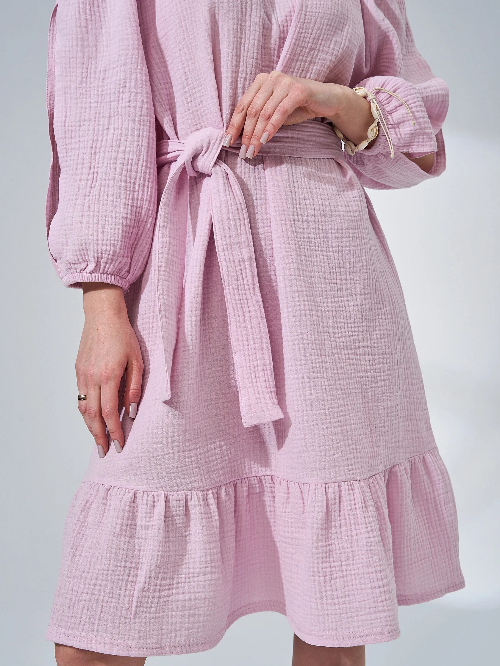 Женское платье с длинным рукавом из муслина — лёгкое и комфортное изделие, подходящее для повседневной носки, пляжа, отпуска или нарядных случаев. Муслин — это натуральная ткань из хлопка, которая хорошо пропускает воздух, не вызывает аллергии и обеспечивает комфорт даже в жаркую погоду.