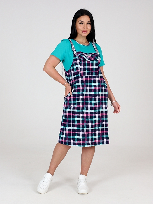 Платье летнее женское из кулирки: имитация футболки и сарафана. Оригинальный крой. Платье - сарафан обманка, приятное к телу, легкое. Красивое повседневное платье будет хорошо смотреться на разных типах женской фигуры, для женщин всех возрастов. Удобный, свободный крой подарит Вам полную свободу движений и комфорт.