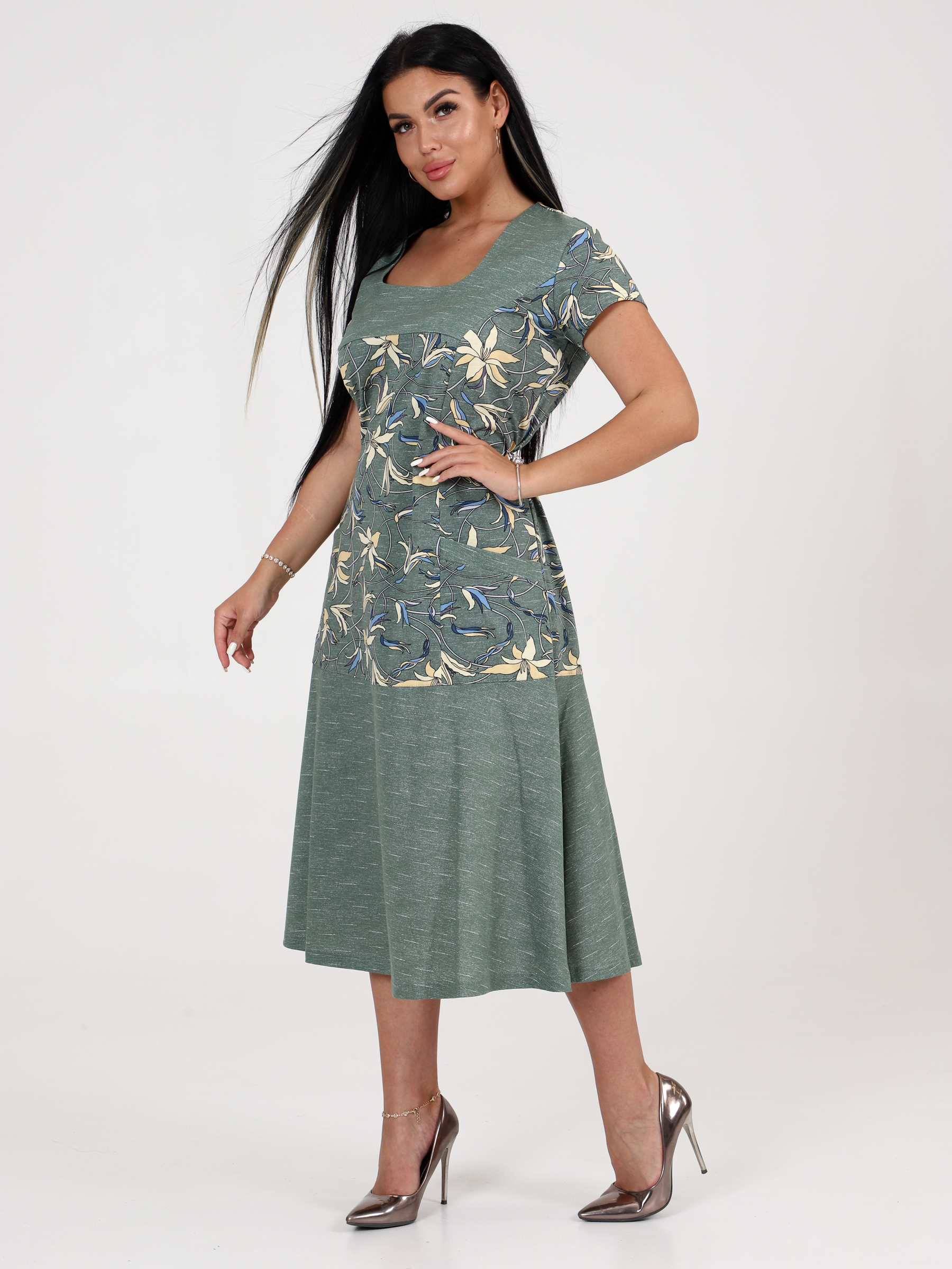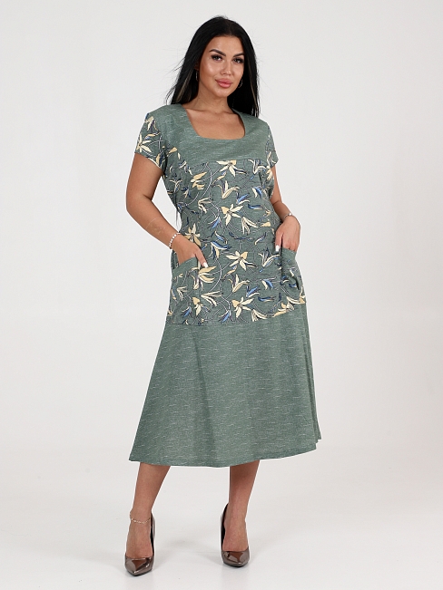 Женское платье Вера макси ПлК-340 / Лилии на зеленой рогожке