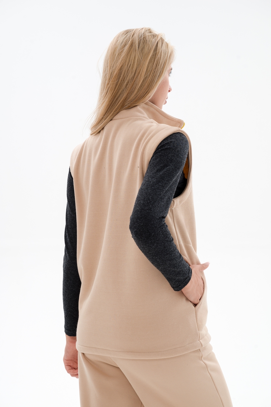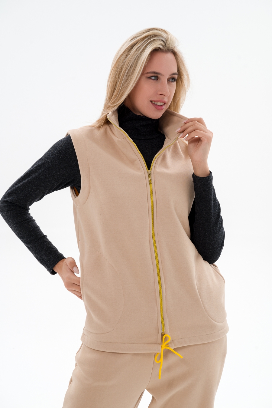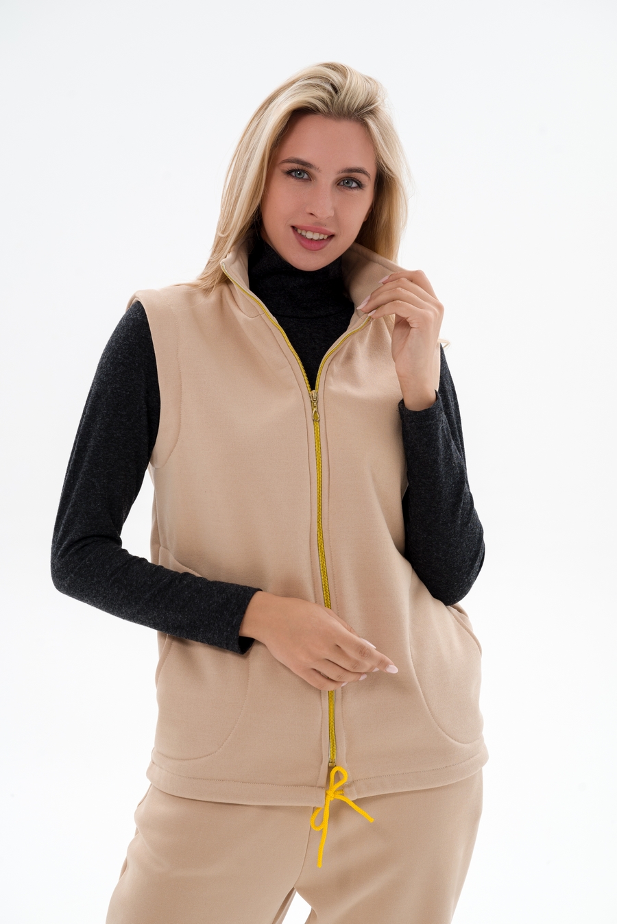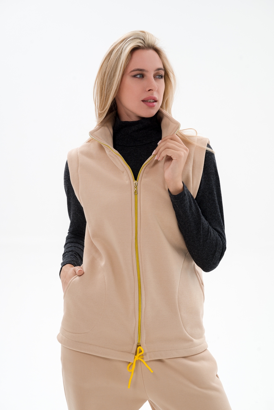 Женский жилет из футера — это практичная и уютная вещь, которая сочетает комфорт и стиль. Футер — трикотажная ткань с гладкой лицевой стороной и махровой изнанкой.